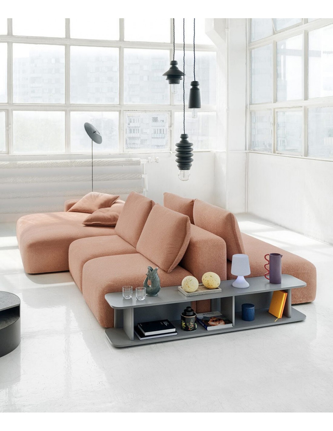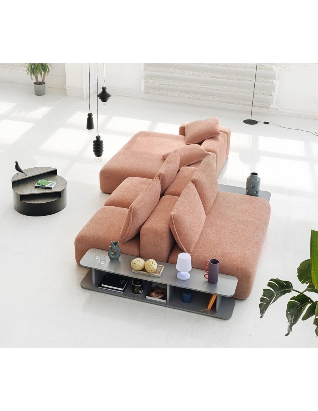 DUNE modulārais dīvāns ar dziļu sēdi un mīkstiem spilveniem. Brīvi kombinējami moduļi maksimālam komfortam un atpūtai.