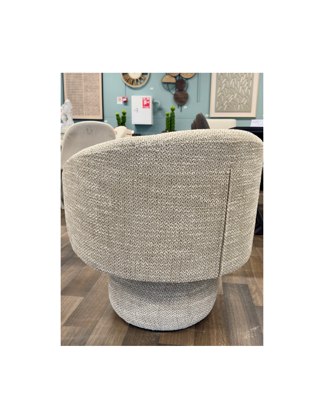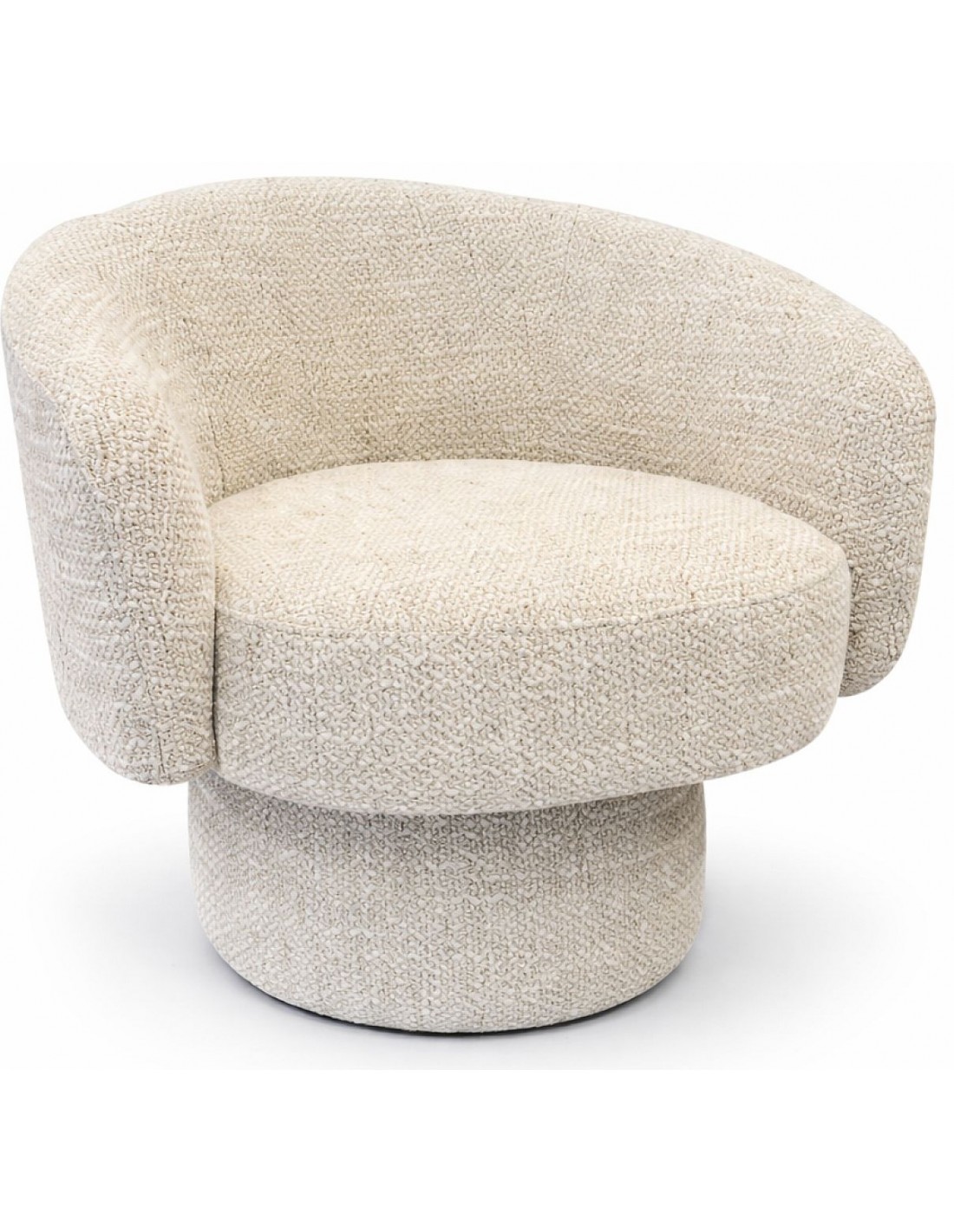 Stilīgs un moderns atpūtas krēsls NESTOR. Apaļas formas, apvienotas no divām daļām: mīksta sēdekļa un muguras balsta, kas pāriet roku balstos.