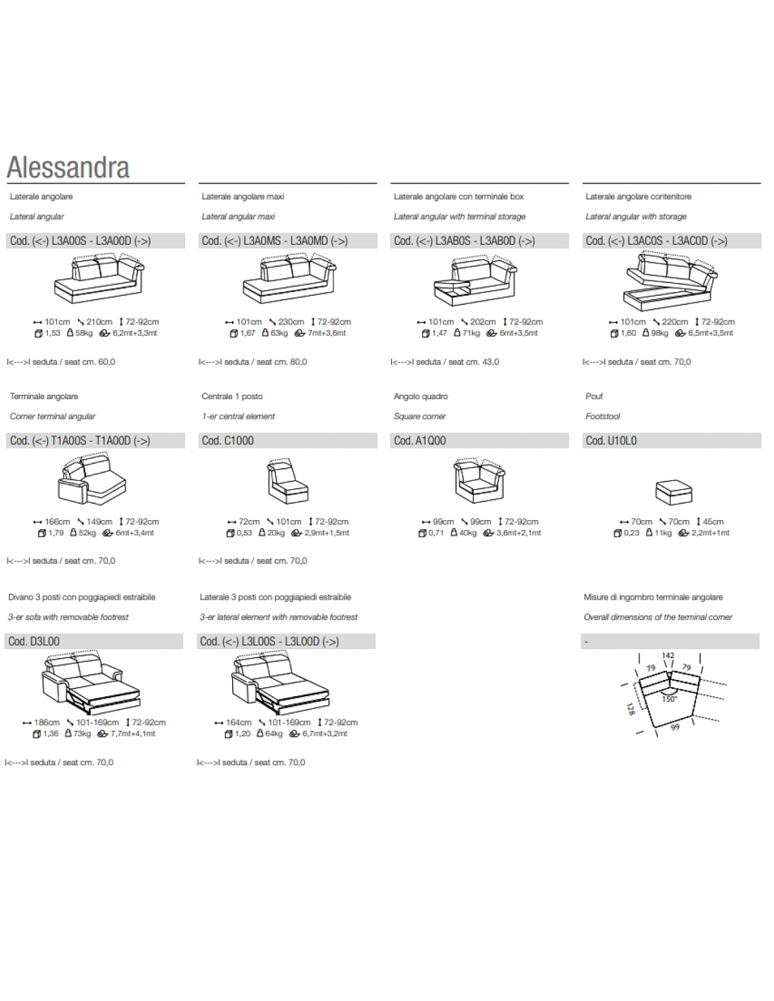 ALESSANDRA - moderna dizaina stūra dīvāns . Pilnībā noņemams audums, mazgājams. Regulējami galvas balsti. Var pasūtīt ar guļamzonu un gultas veļas kasti. Papildus iespējams pasūtīt arī pufu.