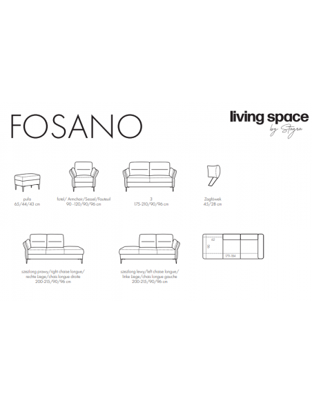 FOSANO dīvāns – elegants un ērts risinājums ar regulējamiem roku balstiem. Moderns dizains un pielāgojama konfigurācija jūsu viesistabai.