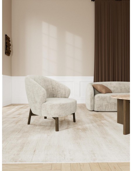 DARLENE lounge krēsls – elegants dizains ar mīkstu audumu un koka kājām. Komforts un stils modernai viesistabai vai atpūtas zonai.