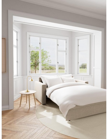 Izvelkamā guļamvietas funkcija ļauj ātri un ērti pārveidot dīvānu par gultu, padarot to ideāli piemērotu gan ikdienas lietošanai, gan viesiem. Divi atsevišķi muguras spilveni nodrošina papildu komfortu.