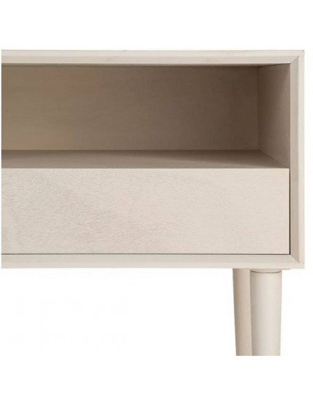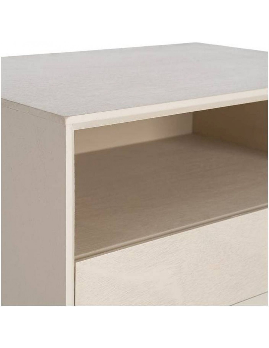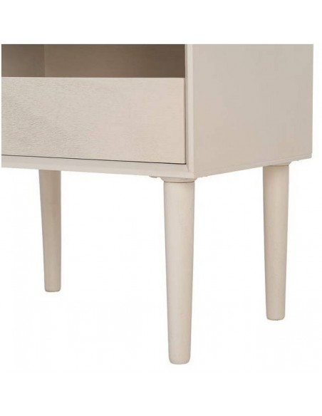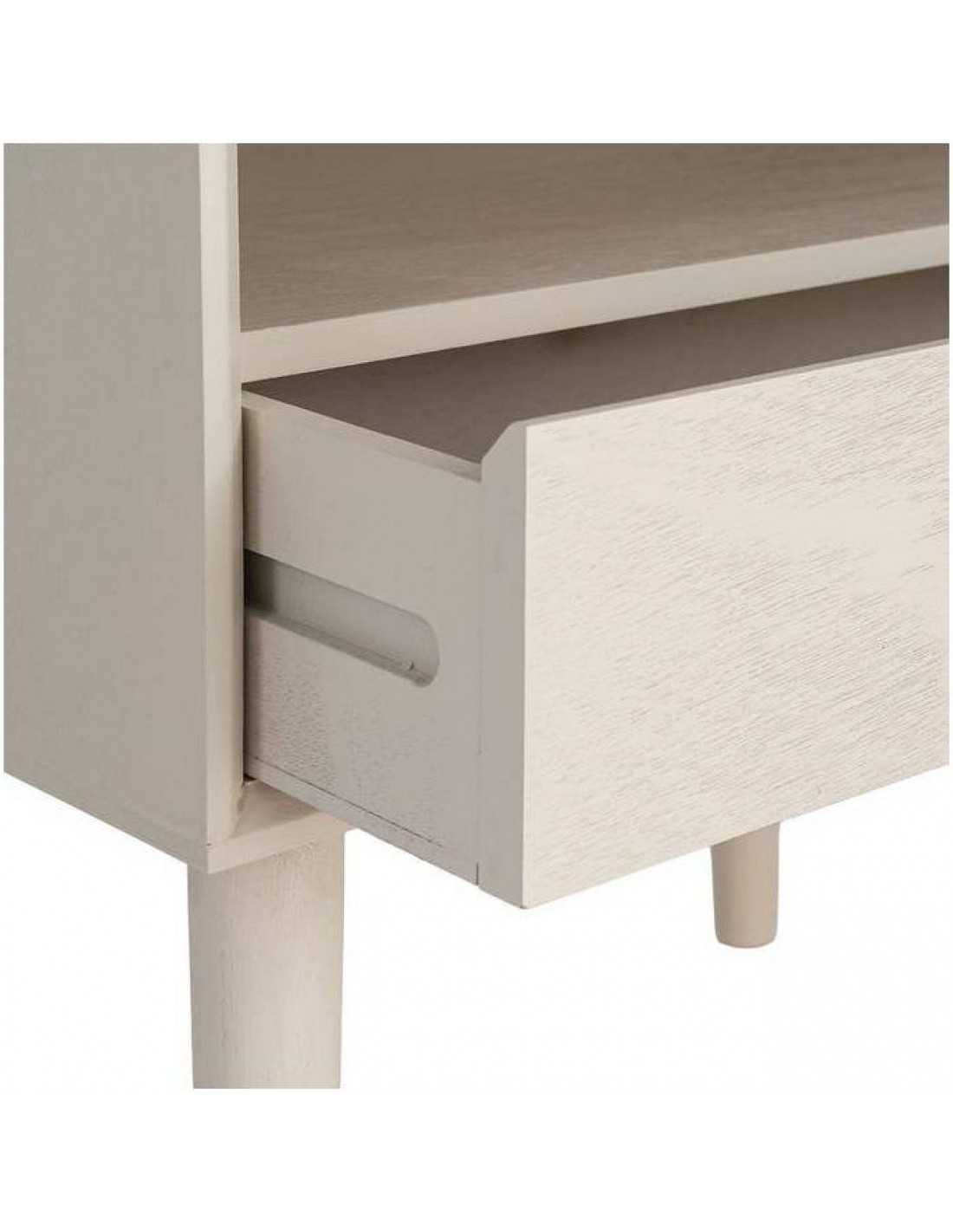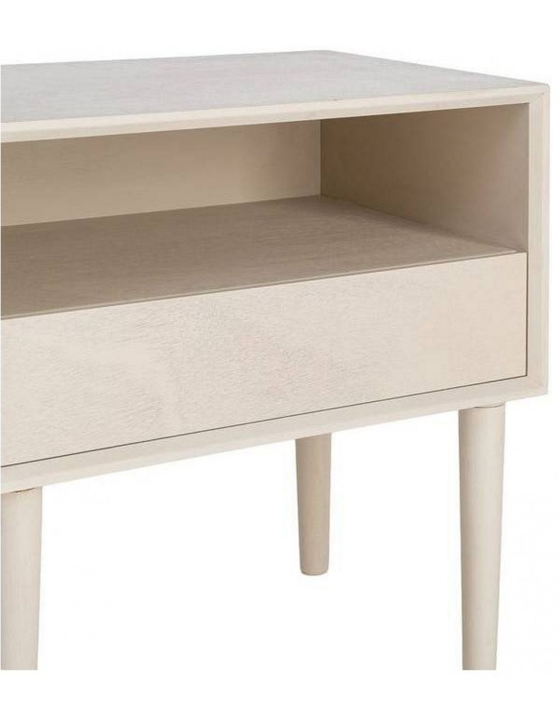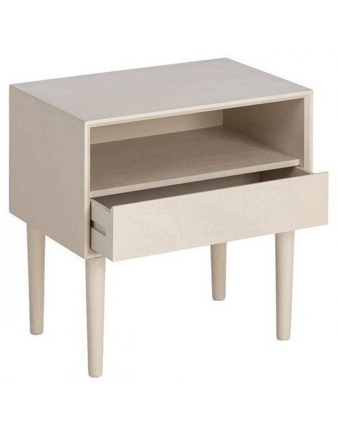 Kompakts krēmkrāsas naktsgaldiņš ar atvilktni, kas lieliski iederēsies modernā un mājīgā guļamistabas interjerā.