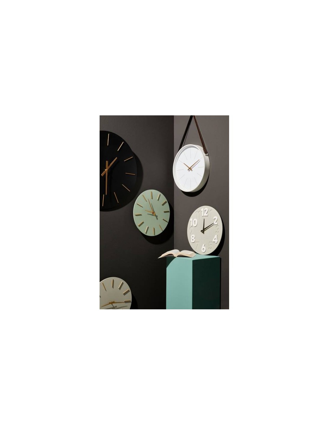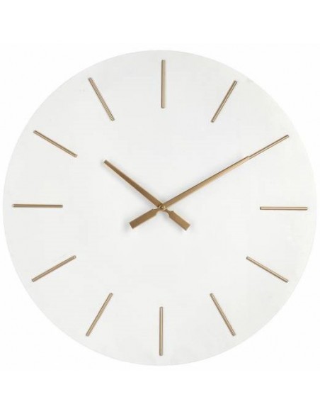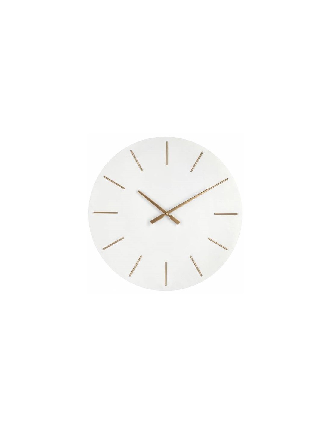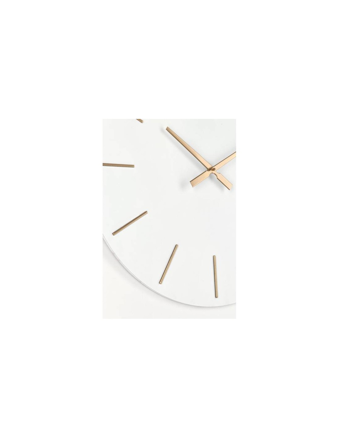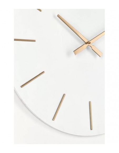 TIMELINE pulkstenis ir izgatavots no kokšķiedras MDF plātnes baltā krāsā un atsevišķām metāla līnijām zelta krāsā. Tādējādi pulkstenis izskatās grezns un skaists, bet arī vienkāršs un minimālistisks.