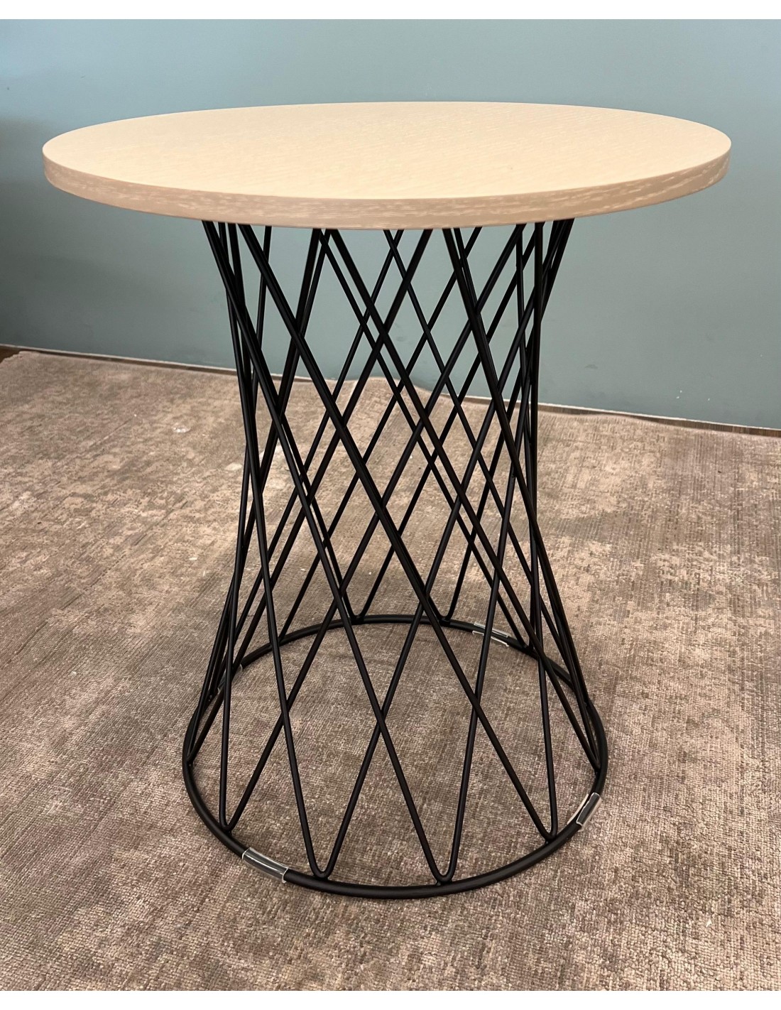Elegants sānu galdiņš - ELLA ar dabīgu finiera galda galda virsmu un metāla kāju. Lieliski piemērots moderna dizaina viesistabai. ietiņveida kāja ir gaisīga un viegla.