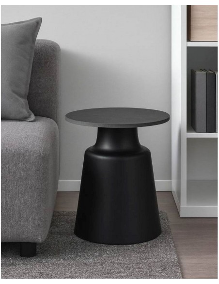 Galdiņš NEILL - apaļš, ar melnu Cupa Rough keramikas virsmu un platu melnu metāla kāju.