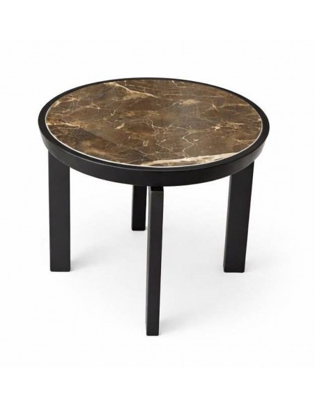 ALCAMO sānu galdiņš izceļas ar izteiksmīgu keramikas virsmu, kuras tumši brūnā, smalki raibā tekstūra piešķir mēbelei raksturu un eleganci. Apaļā forma ļauj galdu viegli pielāgot dīvānam, atpūtas krēslam vai gultai.