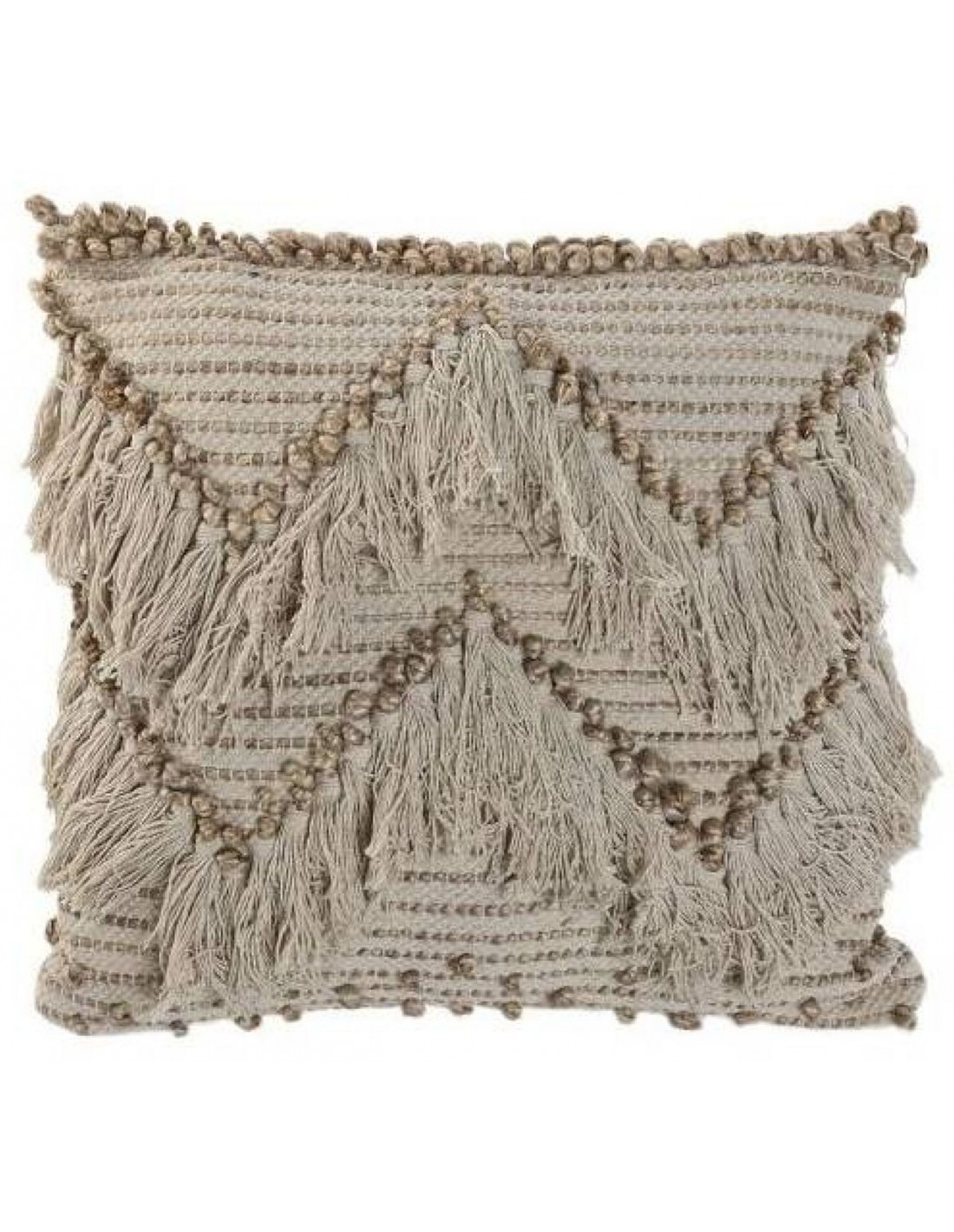 Dekoratīvs spilvens, kas izgatavots no kokvilnas un džutas — dabiska tekstūra, izturīgs audums un maigs, estētisks siltums jūsu telpai.