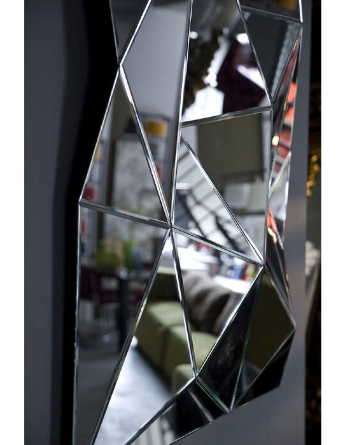 Ļoti neparasts spoguļa objekts ar dinamisku virsmas struktūru. Kubisms tā tīrākajā formā, lai iegūtu visaugstāko dekoratīvo standartu. Funkcionāls dekoratīvs priekšmets. Spoguļu laukumi ir sakārtoti kā prizmas un piešķir telpai burvīgu auru, atspoguļojot interesantas apkārtnes perspektīvas.