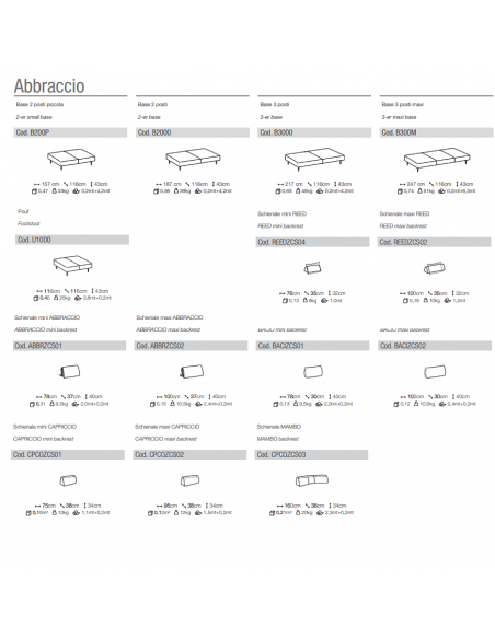Dīvāns tiek izgatavots pēc moduļu sistēmas. Ir pieejami arī citi izmēri, konfigurācijas iespējas un krāsu izvēle.  Muguras balsti ir mobili un nav savienoti ar dīvānu, tos iespējams noņemt vai pārvietot jebkurā jums vēlamajā brīdī un pozīcijā.