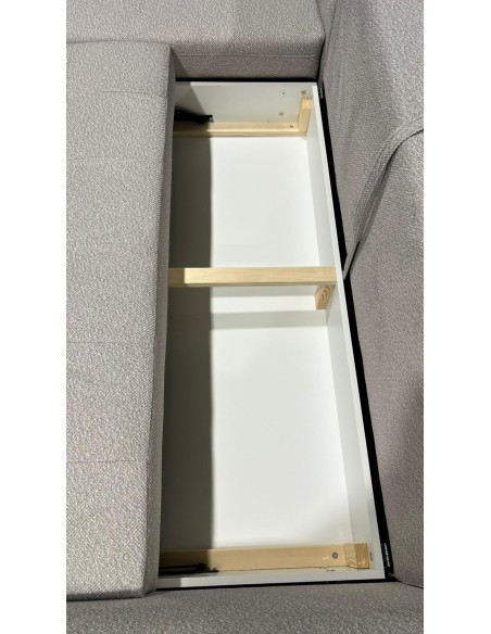 Dīvānam ir viegls izvilkšanas mehānisms. Spilveni ir ar rāvējslēdzējiem un noņemamiem pārvalkiem.