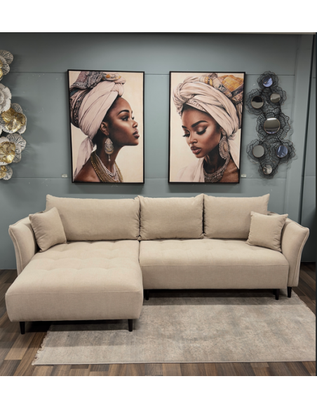 Guļamvietas izmēri: 140x240 cm. Dīvāna stūris ir universāls.