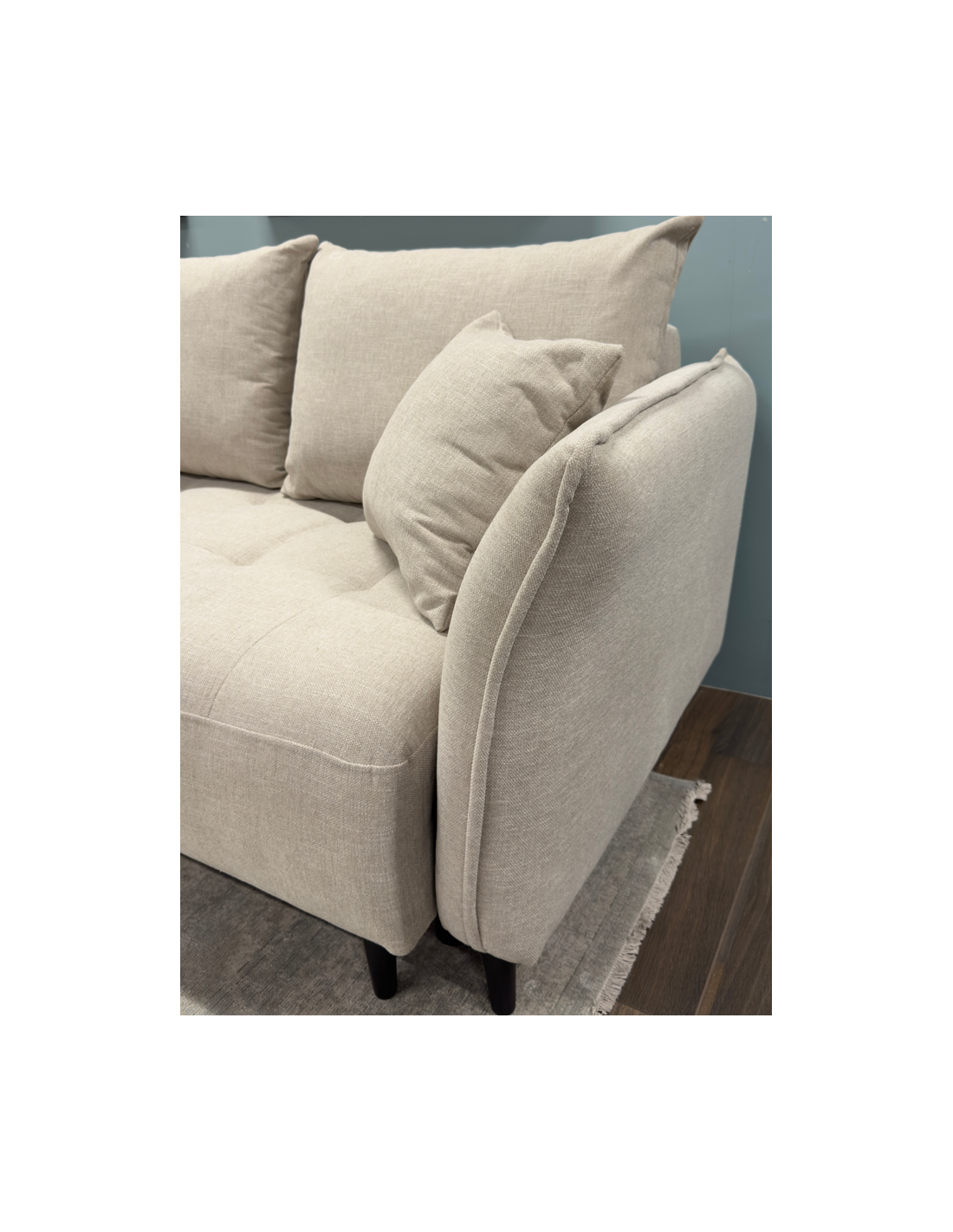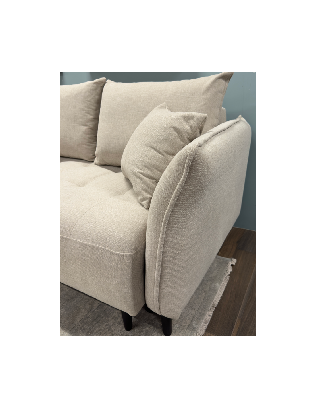 Dīvānam ir viegls izvilkšanas mehānisms. Spilveni ir ar rāvējslēdzējiem un noņemamiem pārvalkiem.