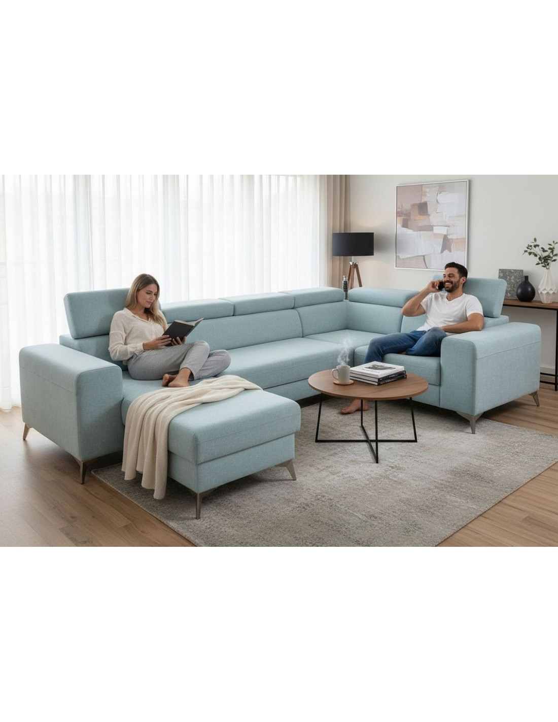 Ērts un stilīgs moderna dizaina dīvāns HERON. Dīvānam ir regulējami galvas balsti un tā izmērs pielāgojams pēc moduļu sistēmas.