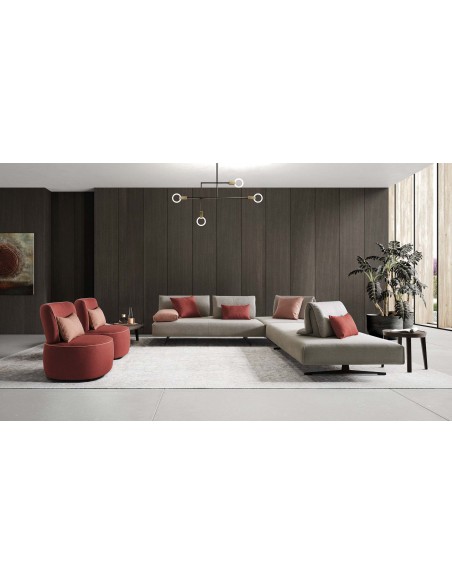 ABBRACCIO - moderna dizaina Itāļu stūra dīvāns. Tam ir pilnībā noņemami pārvalki gan spilveniem gan dīvāna sēžamajām daļām. Bez izvilkšanas funkcijas.