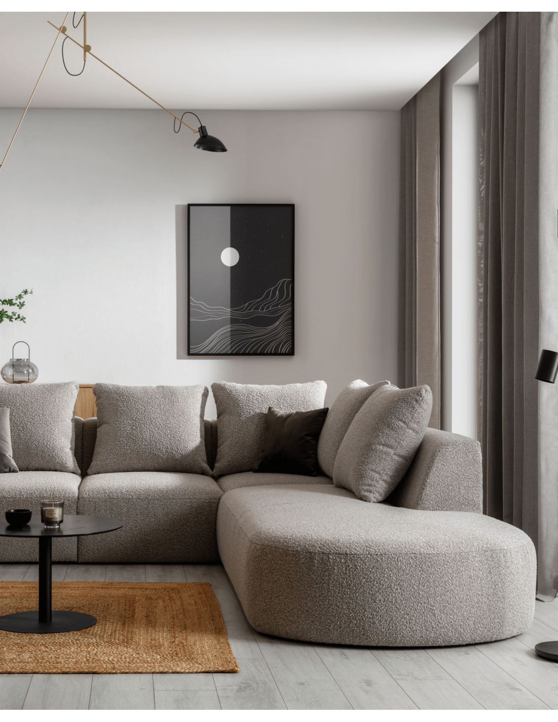 ARES ir modulārs dīvāns ar plūstošām, noapaļotām līnijām, kas piešķir interjeram eleganci un vizuālu maigumu. Pateicoties modulārajai konstrukcijai, dīvānu iespējams konfigurēt dažādos veidos, pielāgojot to gan mazākām, gan plašākām telpām. Noapaļotās formas rada īpaši komfortablu un harmonisku dizainu, kas lieliski iederas modernā dzīves telpā. ARES apvieno estētiku, funkcionalitāti un pielāgojamību ikdienas lietošanai.