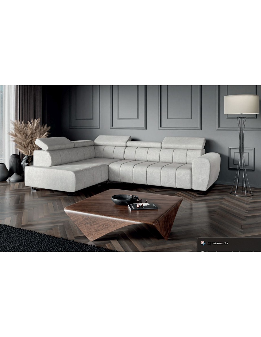 Izgatavots pēc Accanto grupas pasūtījuma (DP)LOTUS stūra dīvāns kļūs par lielisku akcentu jūsu mājās. Funkcionāls, izturīgs dizains un ar regulējamām galvas atzveltnēm. Tam ir izvilkšanas funkcija un veļas kaste.