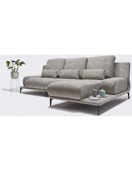 ACAPULCO modulārais dīvāns ar pārbīdāmu roku balstu ļauj viegli mainīt izkārtojumu un izmēru, pielāgojot to telpai un komfortam.
