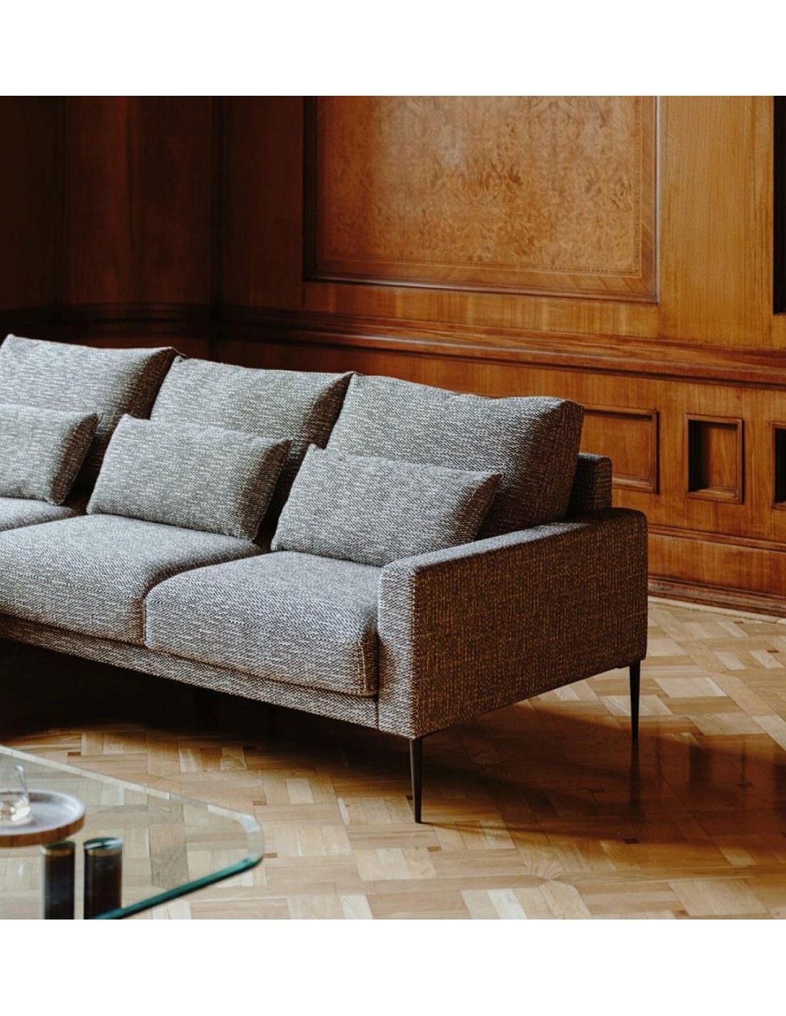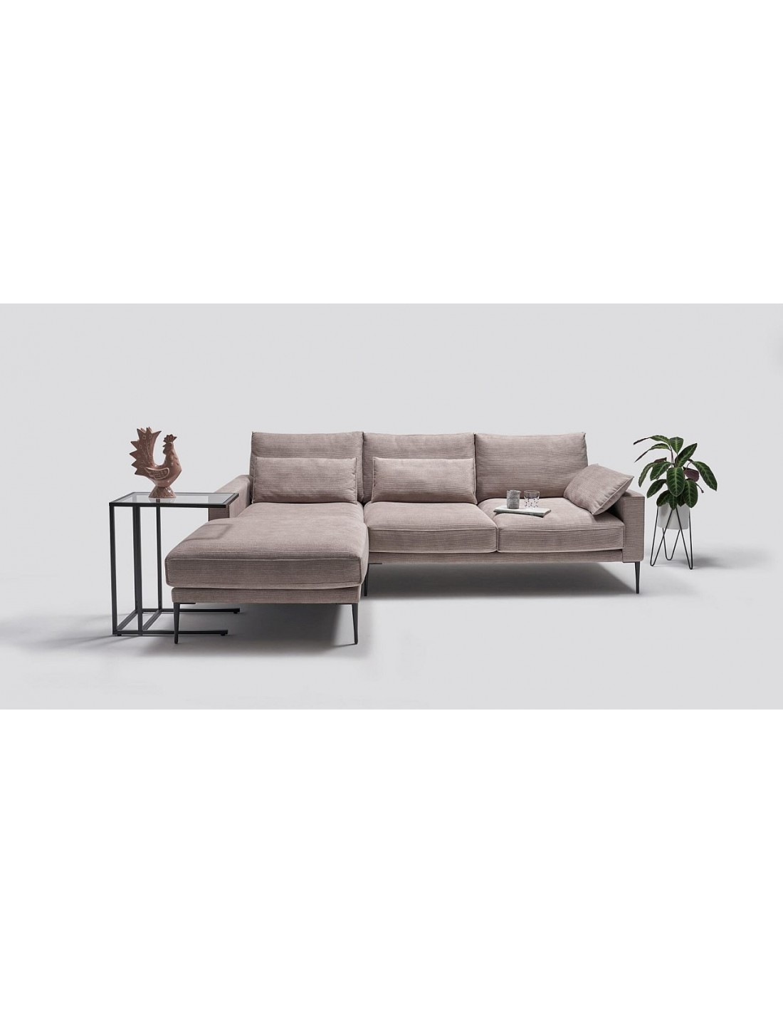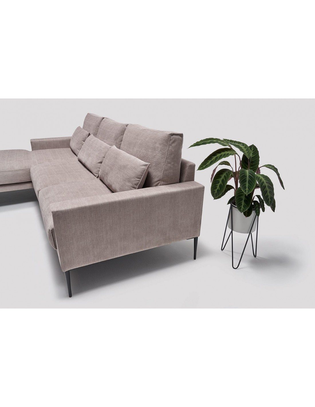 NORMAN tas ir vienkāršas formas stūra dīvāns, taču, rūpīgāk apskatot, Jūs pamanīsiet interesantu un neparastu spilvenu galvgalī un stilīgi izšūtu spilvenu malās, kas šai kolekcijai piešķir eleganci. Spilvenus iespējams pildī ar spalvām vai putām. Daudzie dažāda izmēra elementi, kas iekļauti šajā kolekcijā, ļauj Jums lieliski pielāgot sofas vai stūra dīvāna izskatu atbilstoši Jūsu individuālajām vēlmēm. Augstās kājas piešķir viegluma sajūtu. Joslas spilveni nodrošina ērtāku atbalstu.