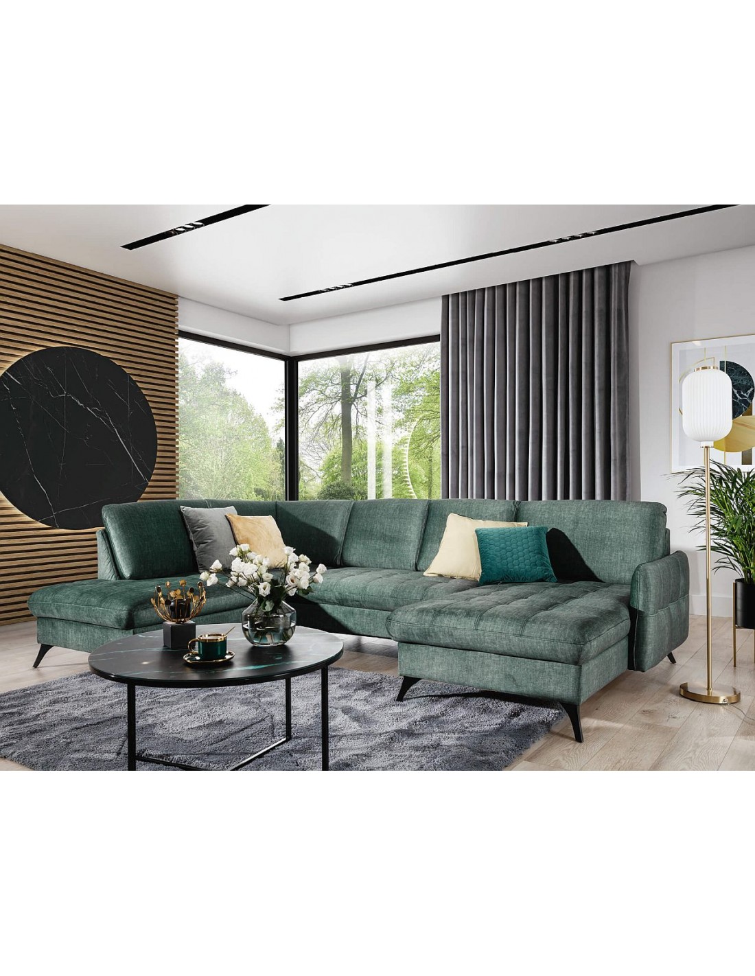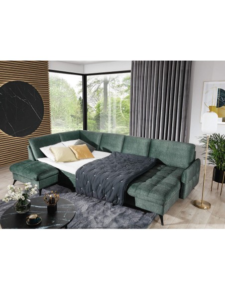 TIKKA - stilīgs, ērts un U veida stūra dīvāns. Šim modelim ir guļamfunkcija un gultasveļas kaste.