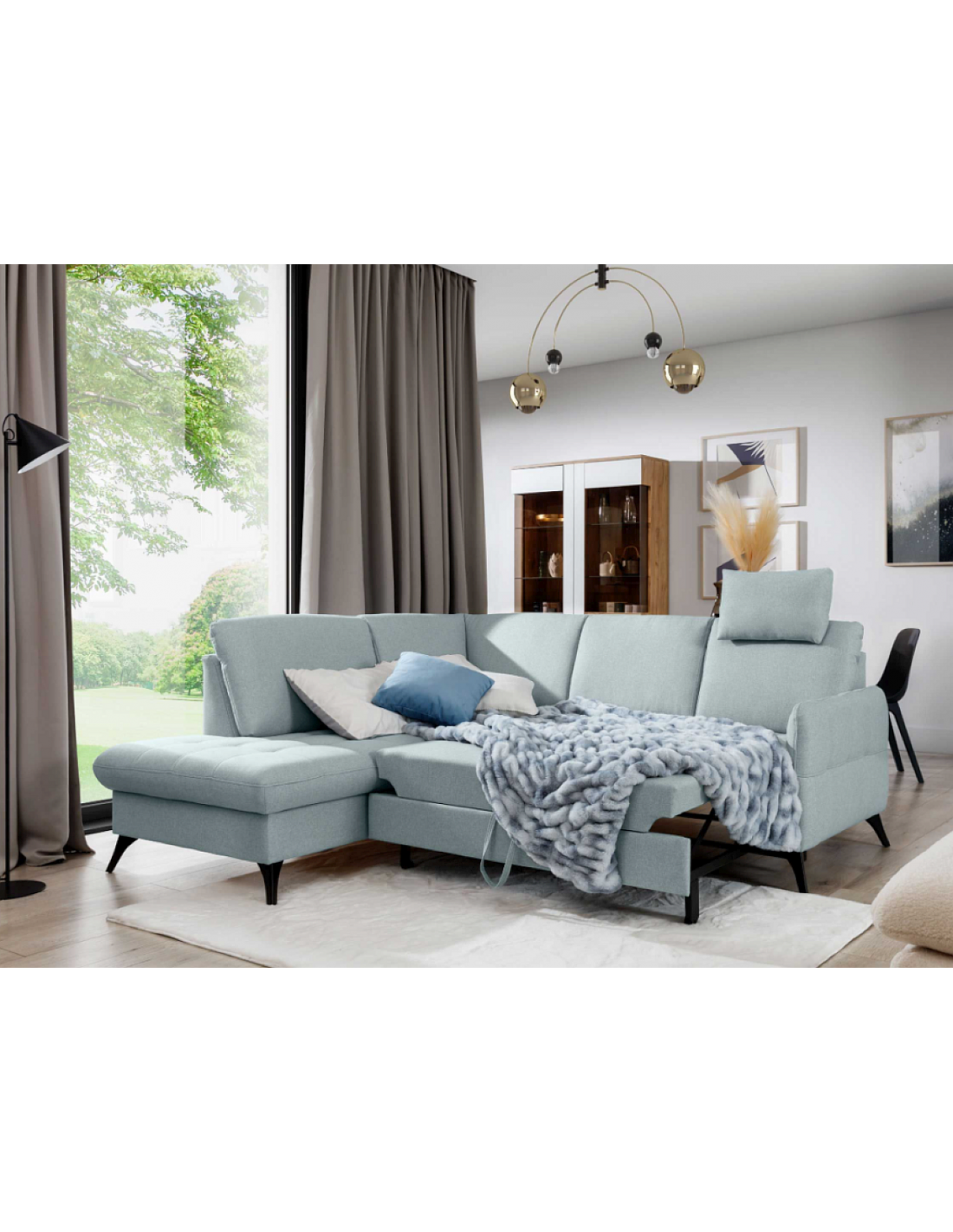 TIKKA - stilīgs, ērts stūra dīvāns. Šim modelim ir guļamfunkcija un gultasveļas kaste.