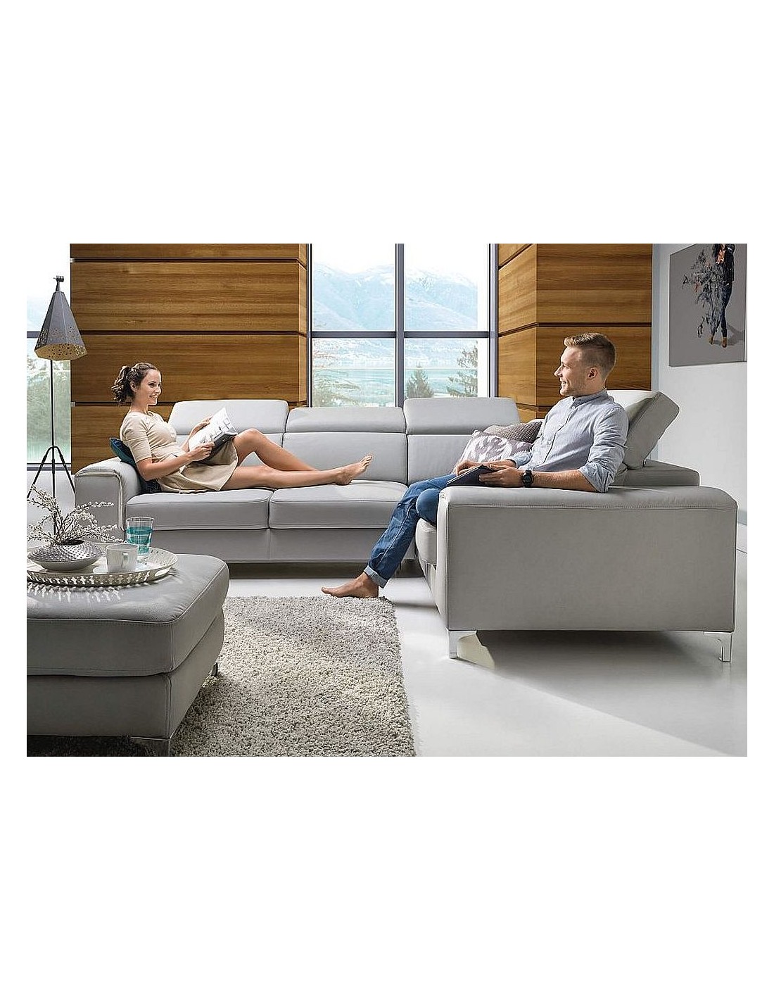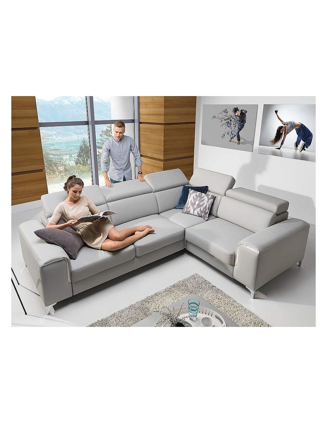 Ērts un stilīgs moderna dizaina stūra dīvāns AVONEGA. Pieejami dažādi izmēri, komplektācijas iespējas un krāsu izvēle. Stūris labajā vai kreisajā pusē. Regulējami galvas balsti.