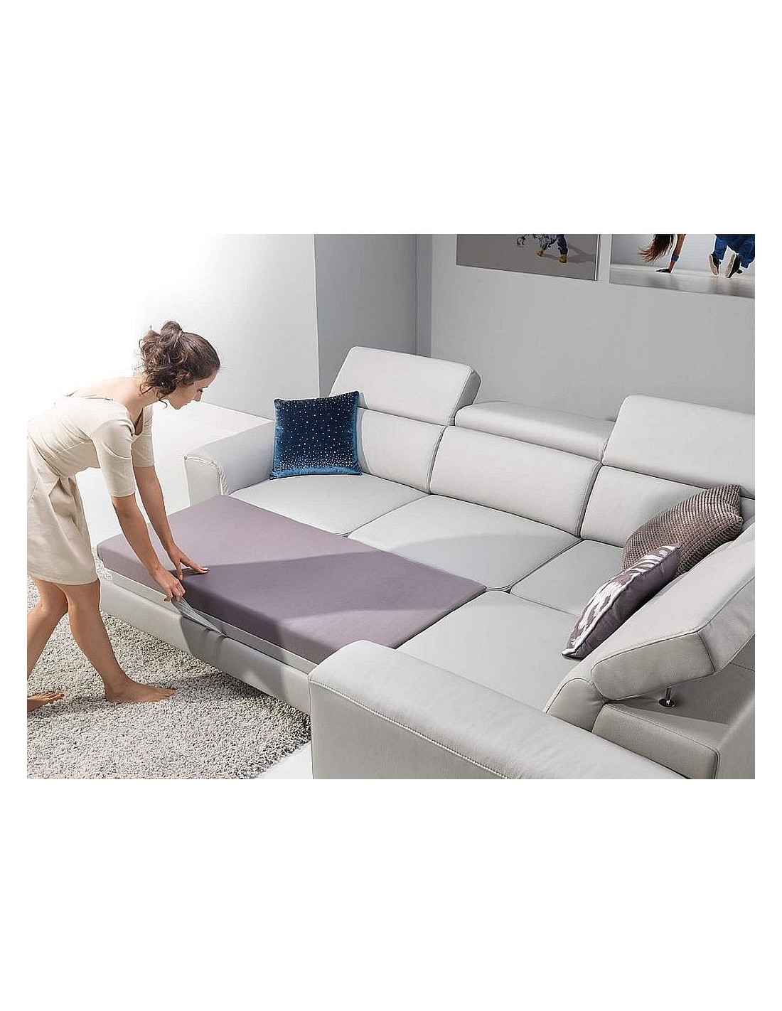 Dīvāna izmēru iespējams izvēlēties pēc moduļu sistēmas. Dīvānu iespējams pasūtīt ar veļas kasti un izvilkšanas funkciju.