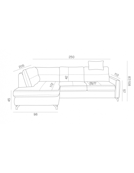 Dīvāna izmēru iespējams izvēlēties pēc moduļu sistēmas. Dīvānu iespējams pasūtīt ar veļas kasti un izvilkšanas funkciju.