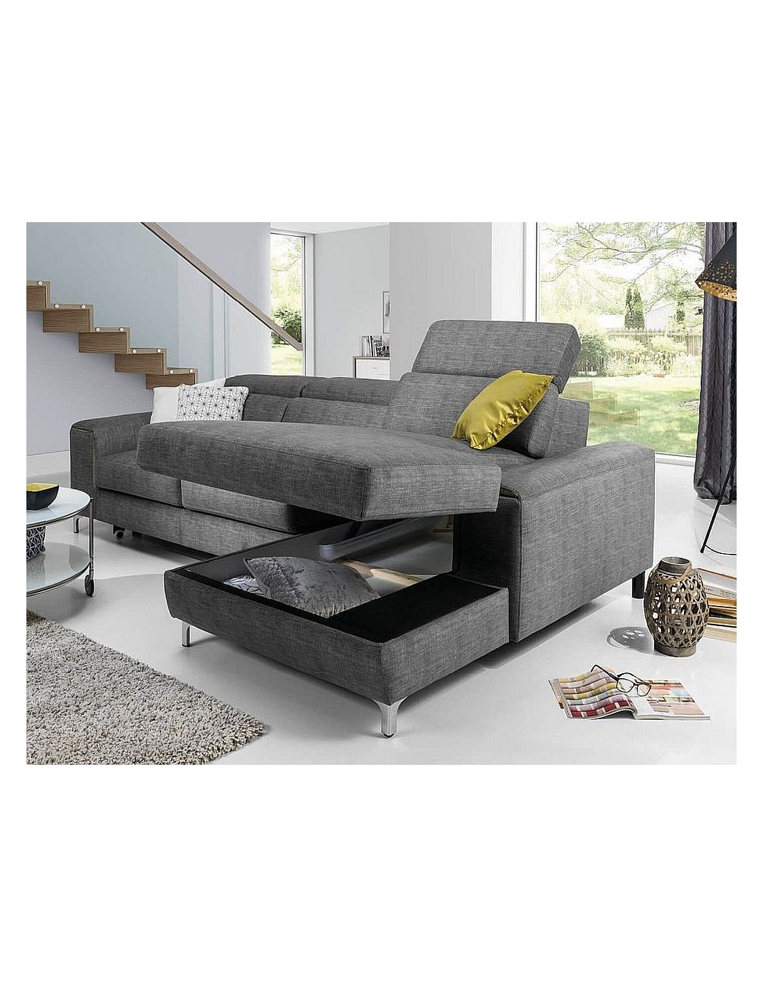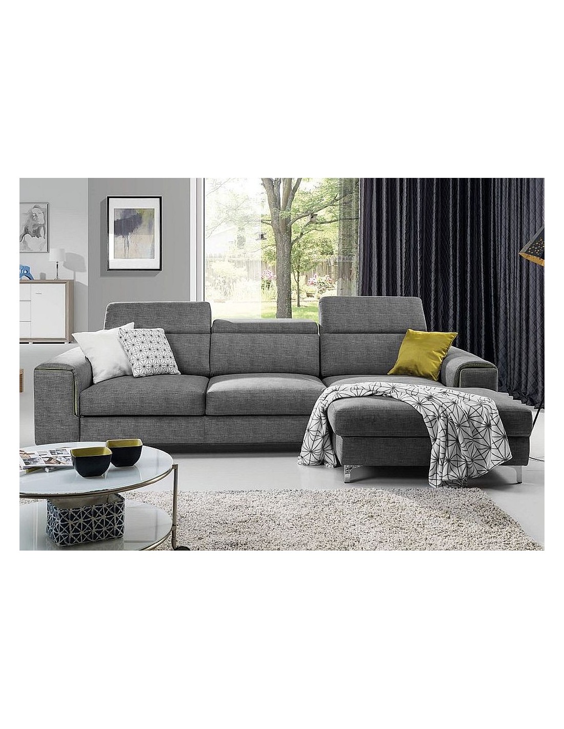 Ērts un stilīgs moderna dizaina stūra dīvāns AVONEGA. Pieejami dažādi izmēri, komplektācijas iespējas un krāsu izvēle. Stūris labajā vai kreisajā pusē. Regulējami galvas balsti. Dīvānam ir miega funkcija un gultas veļas kaste.