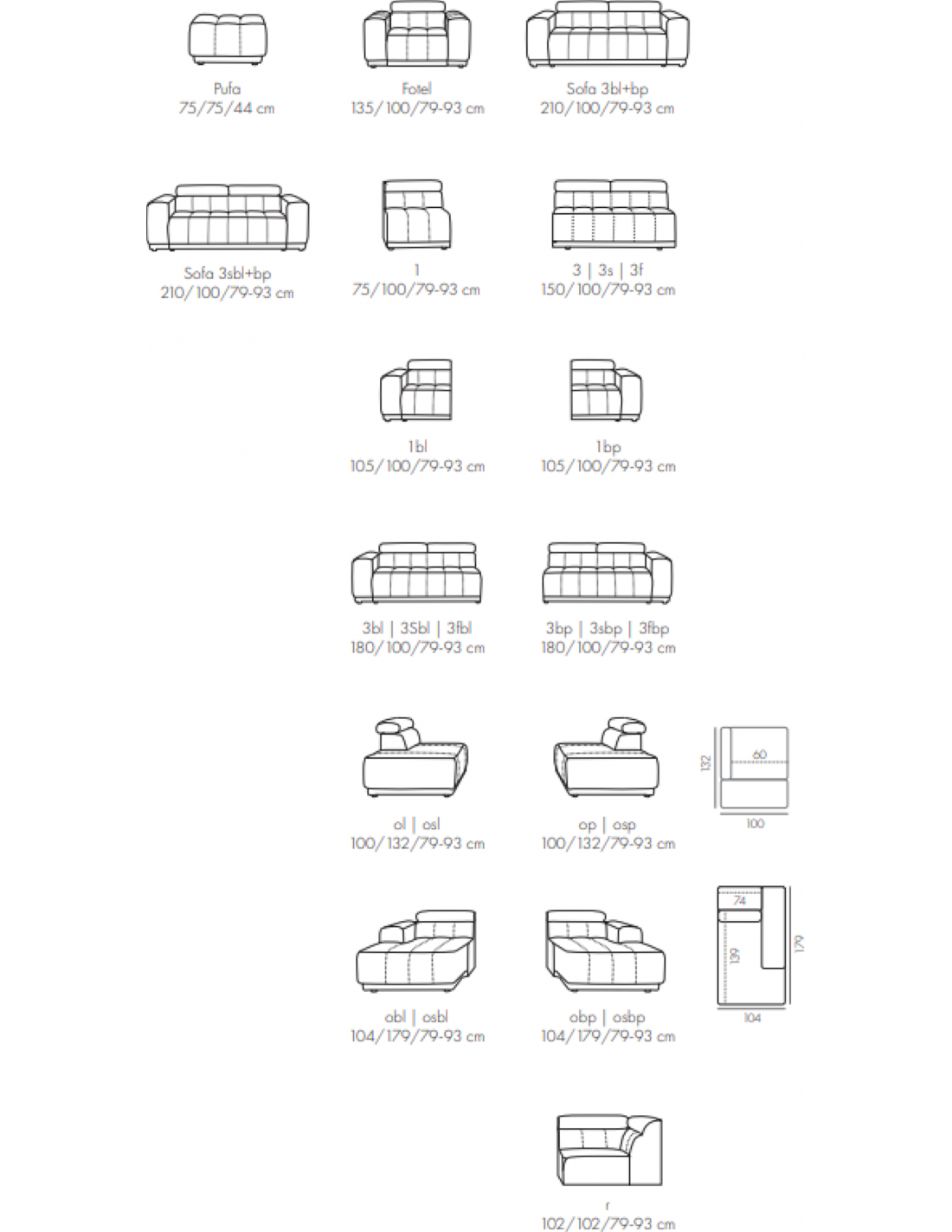 PIEZĪME: mīkstās mēbeles iespējams pasūtīt tikai ACCANTO salonā, kur aplūkojami audumu paraugi.