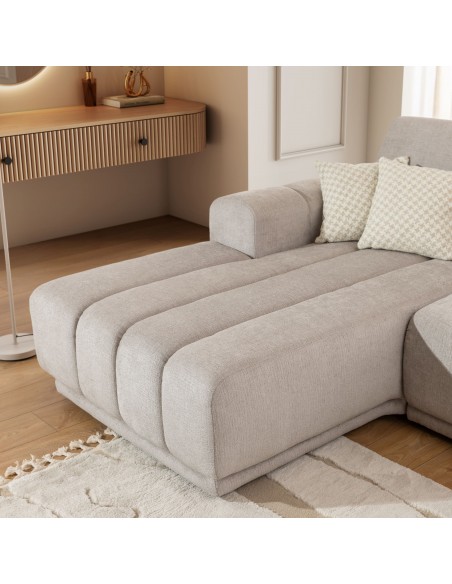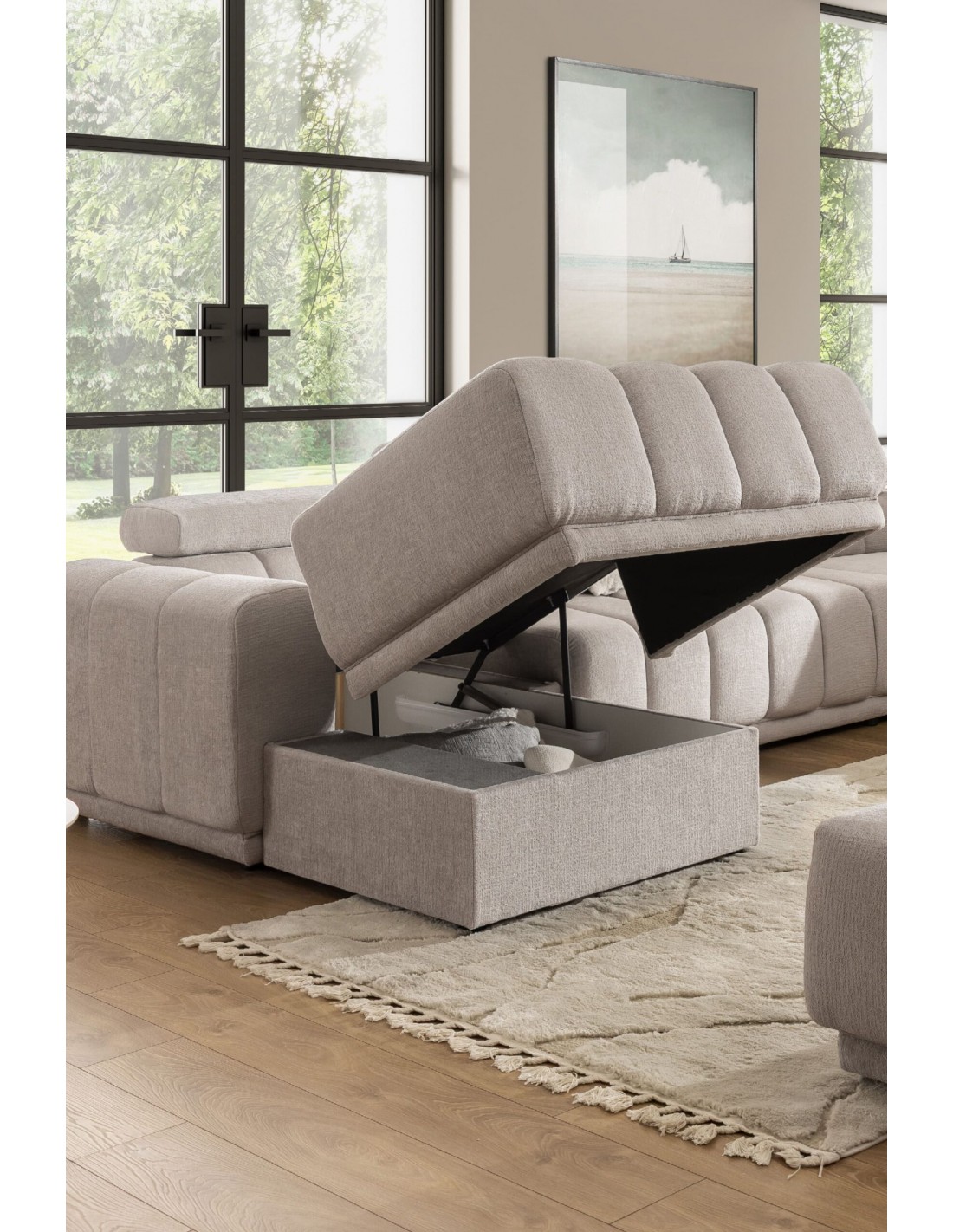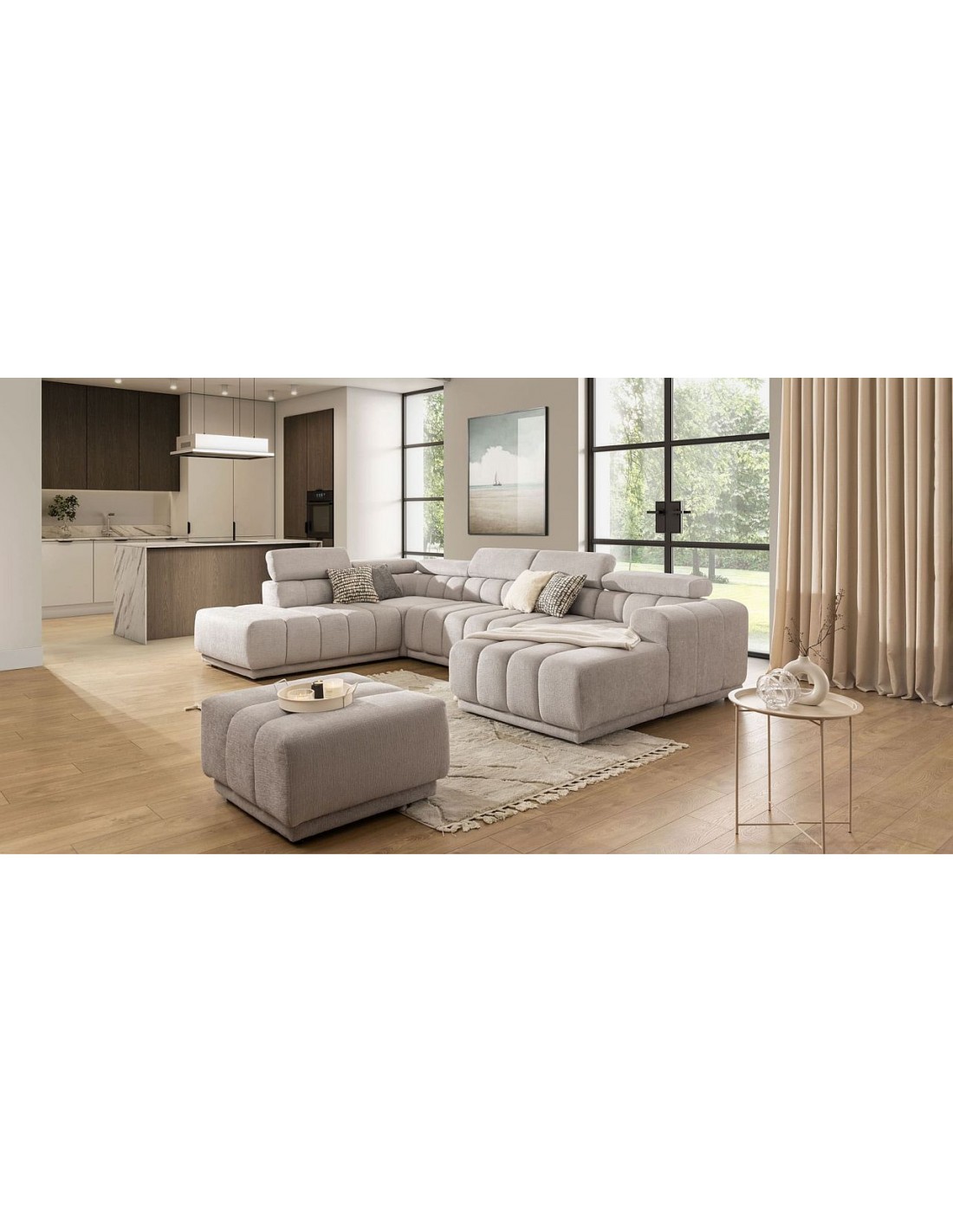 GUSTO ir moderns modulārais dīvāns, kas piedāvā maksimālu komfortu un elastību jebkurai dzīvojamai telpai. Tā pārdomātais dizains ļauj pielāgot dīvāna konfigurāciju atbilstoši jūsu vajadzībām, savukārt mīkstais polsterējums nodrošina patīkamu atpūtu. Dīvāns aprīkots ar praktisku uzglabāšanas nodalījumu un viegli pārveidojams par ērtu guļvietu. Minimālistiskais stils un neitrālais tonis lieliski iederas modernā interjerā, radot harmonisku un elegantu vidi.