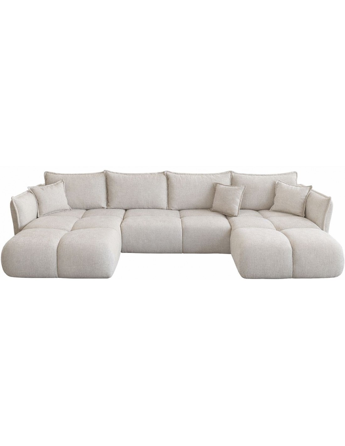 Stūrītis ir aprīkots ar trim lieliem muguras spilveniem (96 × 65 cm) un diviem dekoratīviem spilveniem (45 × 45 cm), kas nodrošina vēl lielāku komfortu. Kāju augstums ir pēc izvēles - 3 cm vai 6 cm (standarta 6 cm plastmasas kājas).