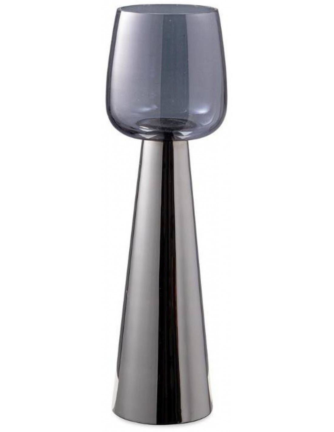 SMOKE svečturis ir unikāls, roku darbs dekoratīvs aksesuārs, kas izstaro smalku greznību un autentisku raksturu. Izgatavots no augstas kvalitātes metāla un stikla, pārklāts ar dūmakaini sudrabainu toni, tas izplata maigu gaismu un rada mājīgu atmosfēru jebkurā telpā.