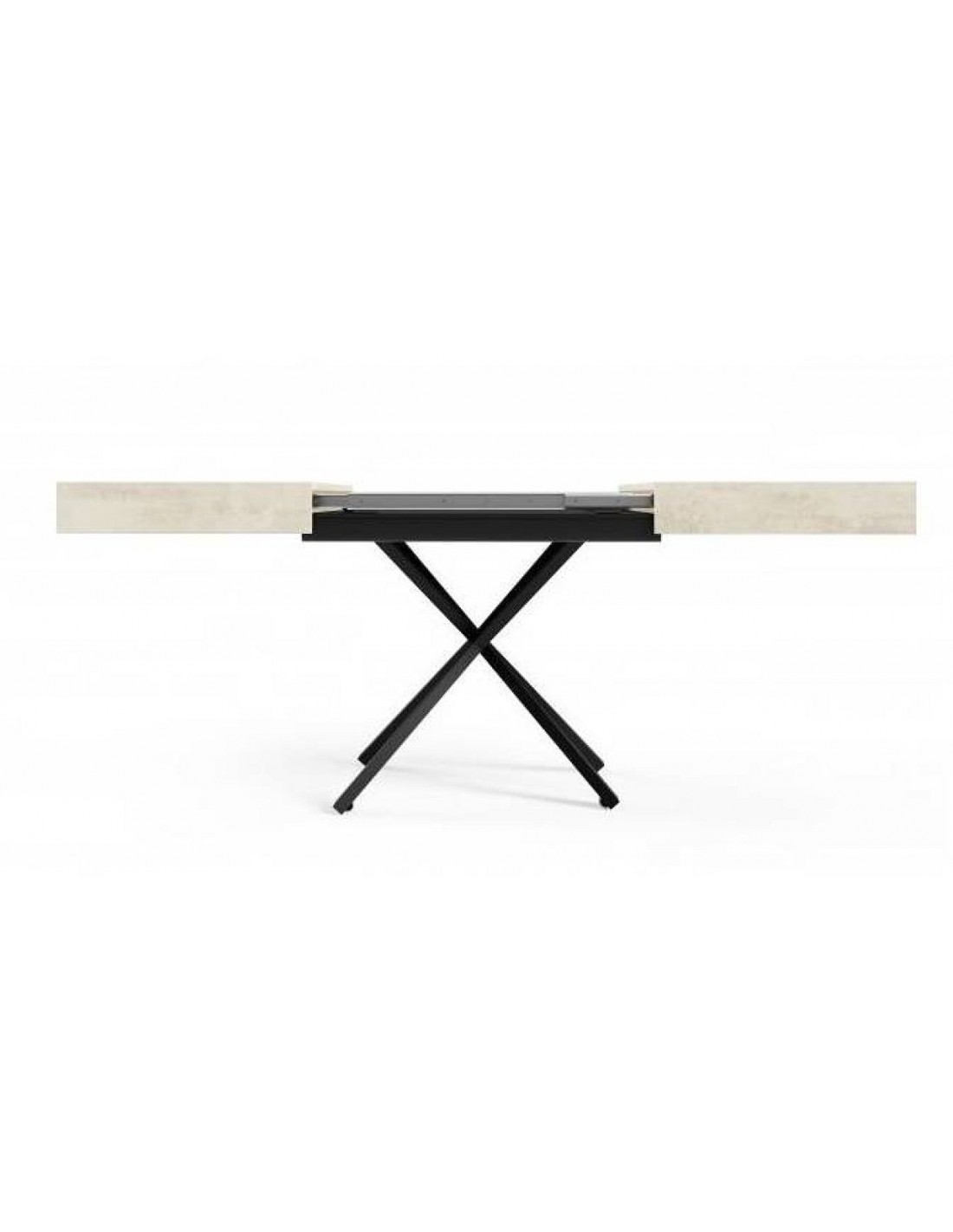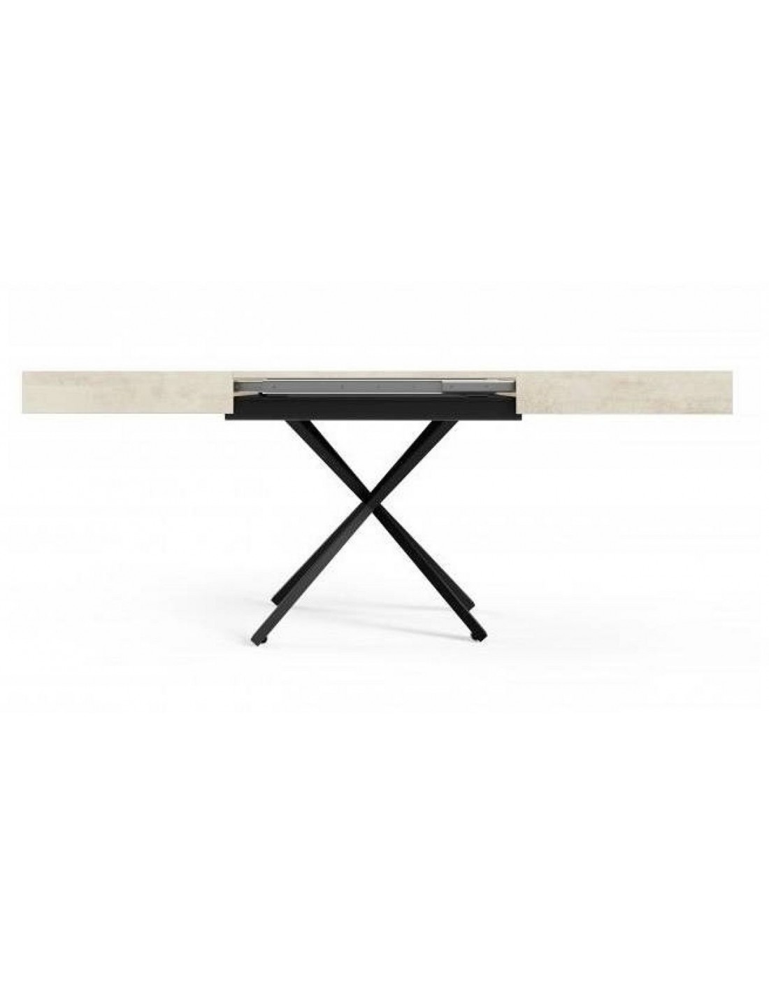 Komplektā ietilpst 2 pagarinājumi 45 cm platumā katrs. Pagarinājumi tiek uzglabāti galda virsmas iekšpusē.