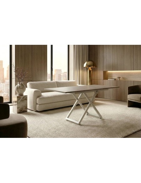 Izgatavots pēc Accanto grupas pasūtījuma (EG)Transformējams kafijas galdiņš, kas viegli pārveidojas par ēdamgaldu, nodrošinot maksimālu funkcionalitāti nelielās telpās.