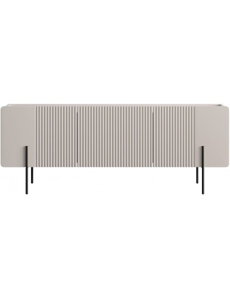 MALMI TV skapītis ir eleganta, minimālistiska dizaina mēbele, kas radīta mūsdienīgam interjeram. Tā priekšpusi rotā smalks reliefs, kas piešķir mēbelei raksturu un unikalitāti. Laminētās plātnes konstrukcija ir izturīga un viegli kopjama, savukārt metāla rāmja tipa kājas nodrošina stabilitāti un vizuāla viegluma sajūtu.