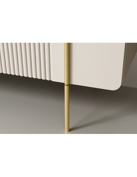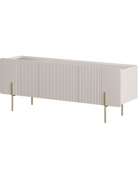 MALMI TV skapītis ir eleganta, minimālistiska dizaina mēbele, kas radīta mūsdienīgam interjeram. Tā priekšpusi rotā smalks reliefs, kas piešķir mēbelei raksturu un unikalitāti. Laminētās plātnes konstrukcija ir izturīga un viegli kopjama, savukārt metāla rāmja tipa kājas nodrošina stabilitāti un vizuāla viegluma sajūtu.