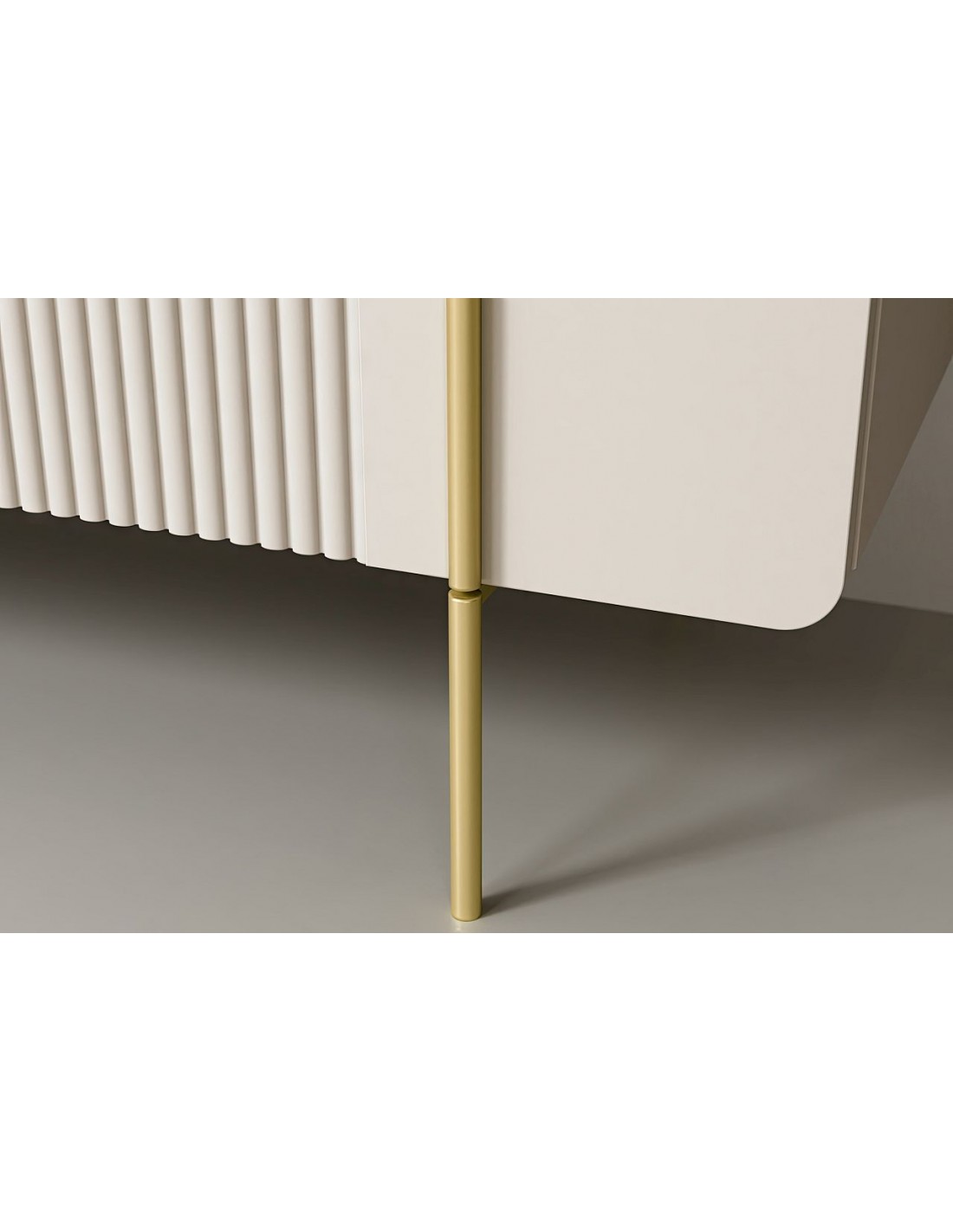 Kompakts TV skapītis MALMI ar rievotu priekšpusi, metāla kājām un ērtu atvilktni ir moderna un funkcionāla izvēle viesistabai.