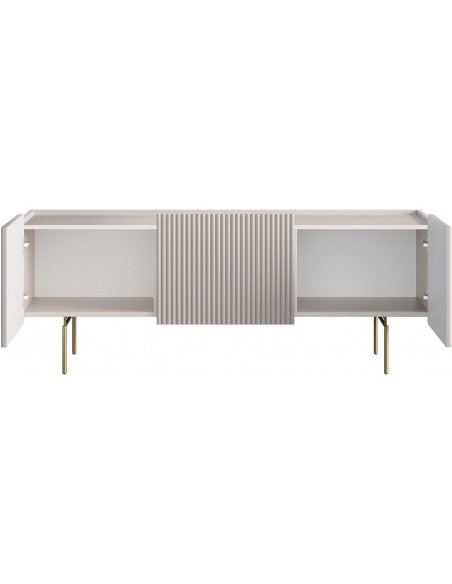 Skapītim ir divas durvis, viena ietilpīga atvilktne un atvērta niša aizmugurē - multivides aprīkojuma ērtai glabāšanai. Integrēts kabeļu pārvaldības risinājums iekšpusē nodrošina kārtību un ērtības. Soft close sistēma un push to open atvēršana nodrošina klusu un uzticamu lietošanu.