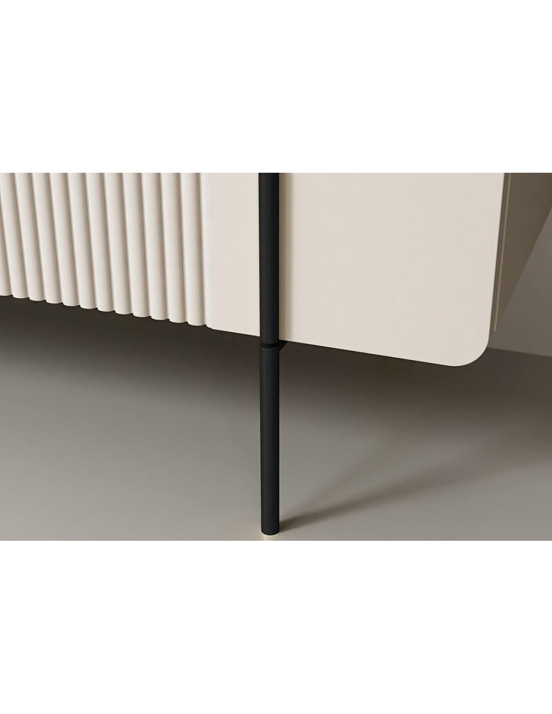 Kompakts TV skapītis MALMI ar rievotu priekšpusi, metāla kājām un ērtu atvilktni ir moderna un funkcionāla izvēle viesistabai.