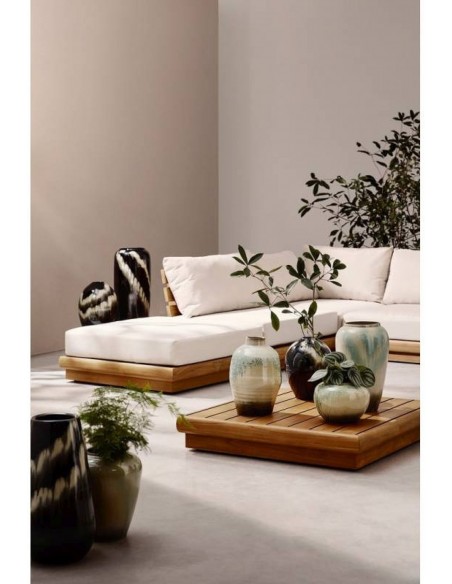 Pateicoties izturīgajai terakotas konstrukcijai un glazētajai virsmai, MELANGE ir piemērota lietošanai ārpus telpām — uz terases, dārzā vai uz balkona. To var izmantot gan kā dekoratīvu akcentu, gan kā kompozīcijas galveno daļu kopā ar citām MELANGE sērijas vāzēm.