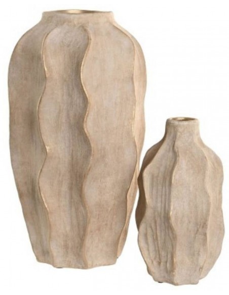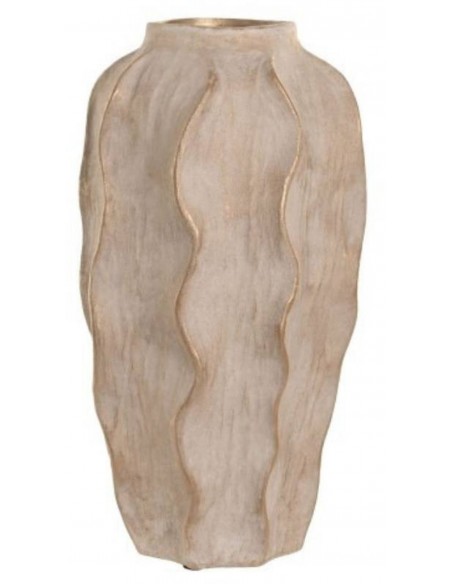 Kompakta akmensmasas vāze ar viļņotu reljefu un vecinātu bēšu nokrāsu, kas radīta neuzkrītošam un dabiskam interjera akcentam.