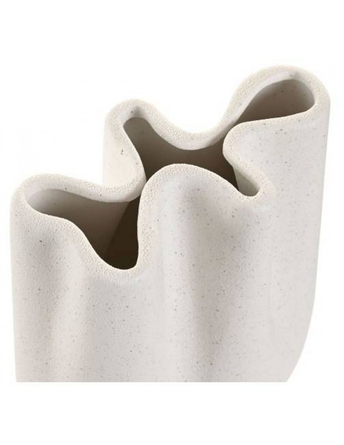 Balta keramikas vāze ar maigu, modernu formu, kas paredzēta neuzkrītošam interjera akcentam un vieglam dekoram.
