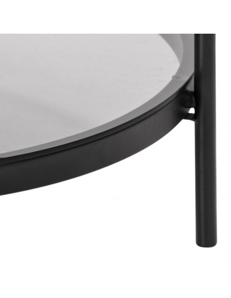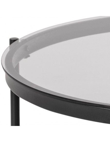 Šis kafijas galdiņš izceļas ar modernu minimālistisku dizainu un smalku stikla virsmu. Rūdītais dūmotais stikls izskatās grezni, vienlaikus ir izturīgs pret ikdienas lietošanu un viegli kopjams. Melnais tērauda rāmis ar matētu pulverkrāsojumu nodrošina stabilitāti un izturību, piešķirot konstrukcijai modernu raksturu. Pateicoties savam izmēram, galdiņš ērti iederas viesistabā – tā ir lieliska vieta dzērieniem, uzkodām vai dekoratīviem aksesuāriem. Elegantais izskats padara šo mēbeli viegli pieskaņojamu modernam vai industriālam interjeram.