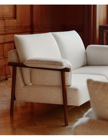 TORII — это элегантный двухместный диван с изысканной, уютной букле-тканью, обеспечивающий комфорт в повседневной жизни. Мягкие сиденья и две большие подушки для спины обеспечивают приятную поддержку, а закругленные подлокотники придают дизайну легкость и ощущение премиум-класса. Устойчивое деревянное основание и тонкие ножки создают визуальную воздушность и обеспечивают прочность конструкции. Идеально подходит для современных интерьеров.