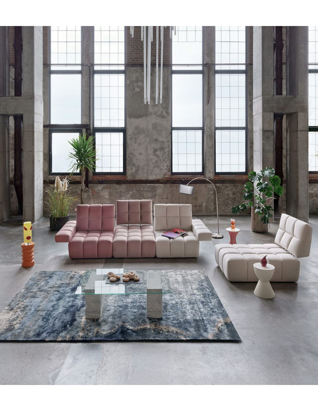 Модульный диван CHOCO с простеганной поверхностью. U-образная компоновка и отдельный пуф для комфортного отдыха. Диван имеет регулируемые спинки и очень глубокое сиденье.