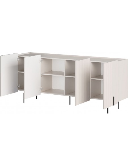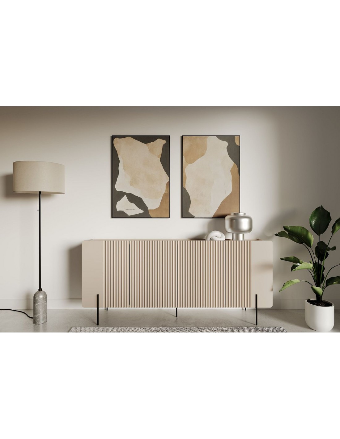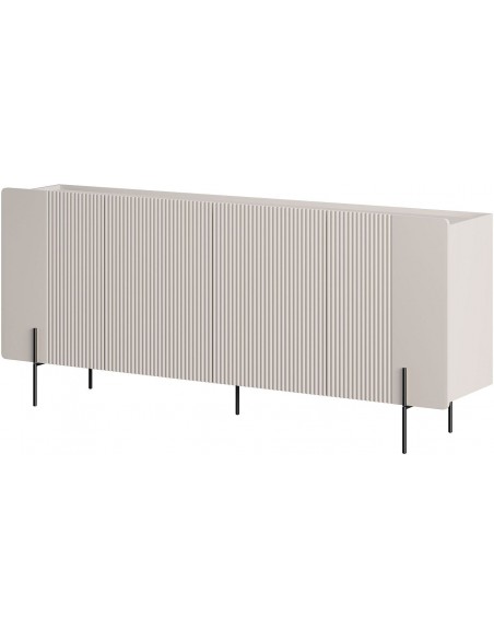 Izgatavots pēc Accanto grupas pasūtījuma (MB)Четырехдверный комод MALMI с дверцами с изящным рельефом и металлическими ножками — стильный и практичный предмет мебели для современного интерьера.