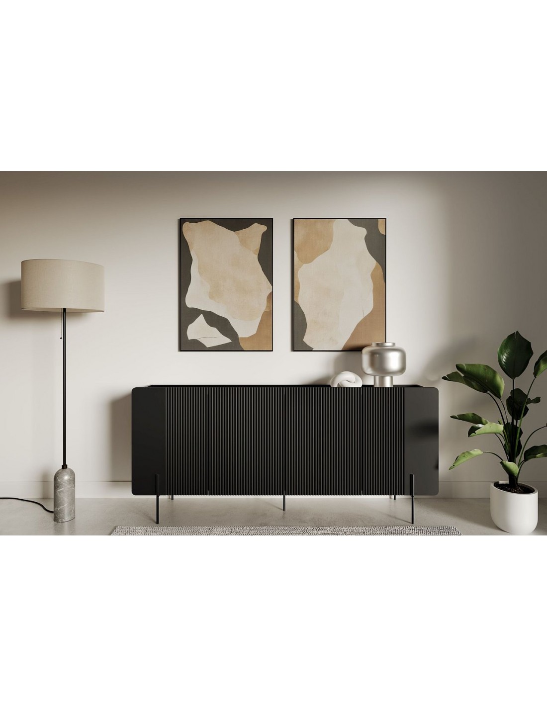 Четырехдверный комод MALMI с дверцами с изящным рельефом и металлическими ножками — стильный и практичный предмет мебели для современного интерьера.