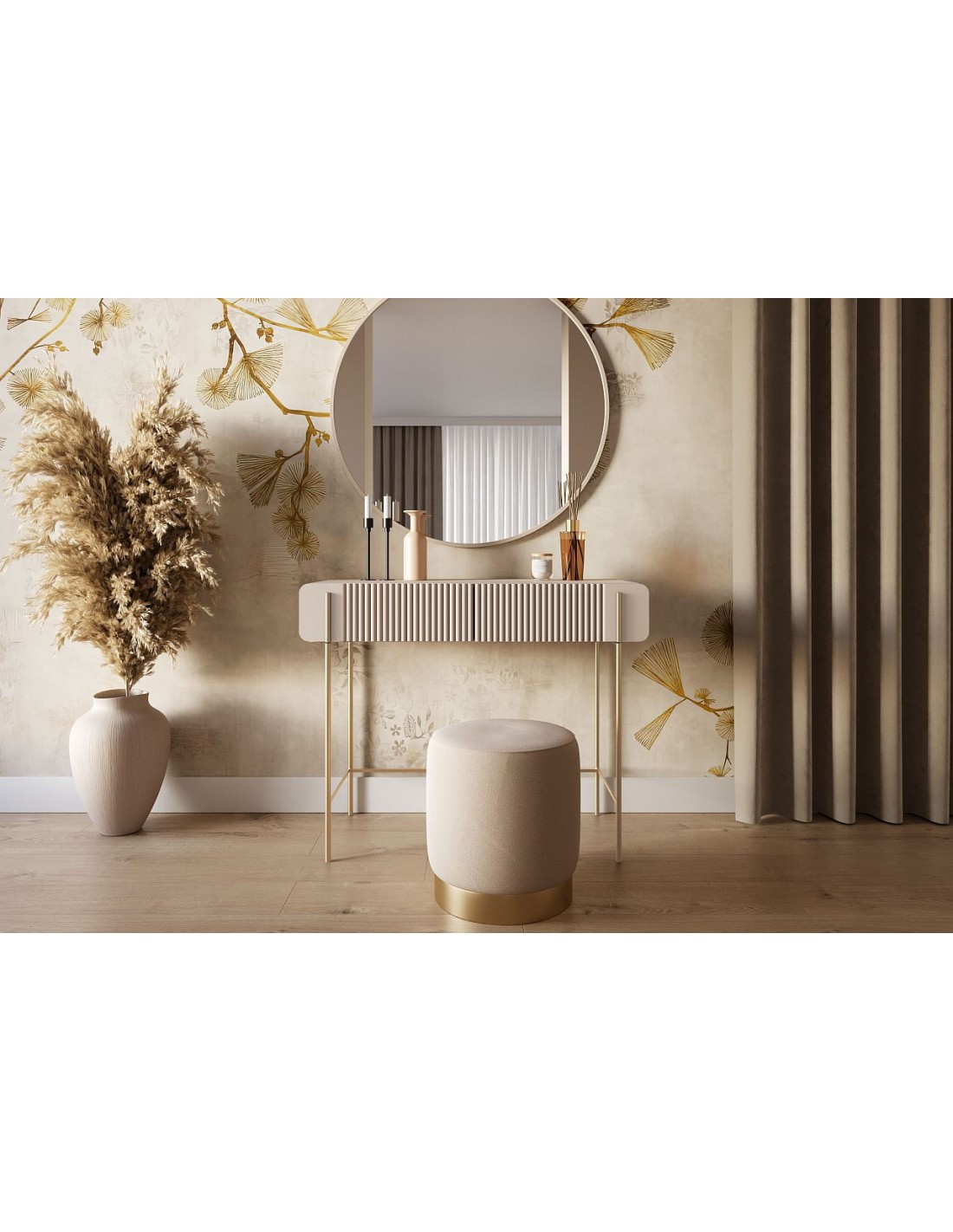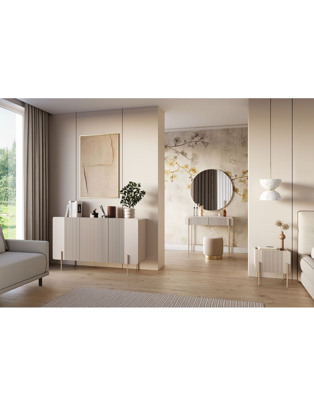Консоль MALMI — элегантный и функциональный предмет мебели, отличающийся минималистичным дизайном и точной ручной работой. Фасад украшен изящным рельефом, что придает мебели уникальный облик, а прочный корпус из ламинированной ДСП толщиной 16 мм гарантирует долговечность и простоту ухода.