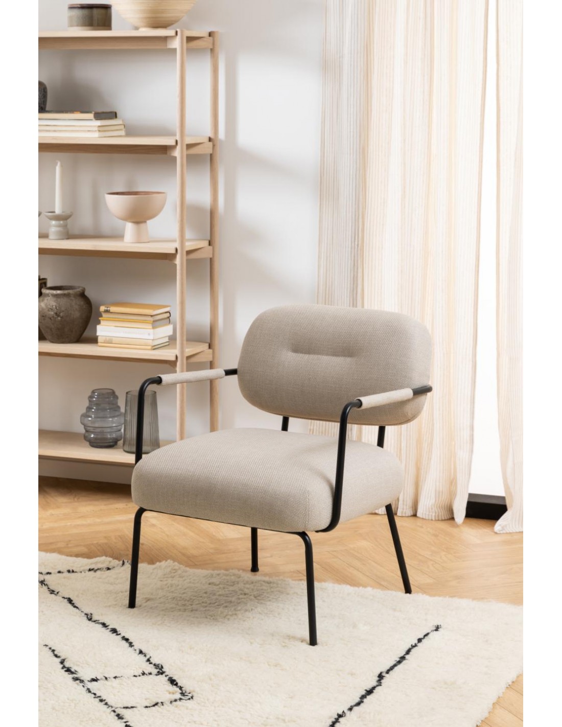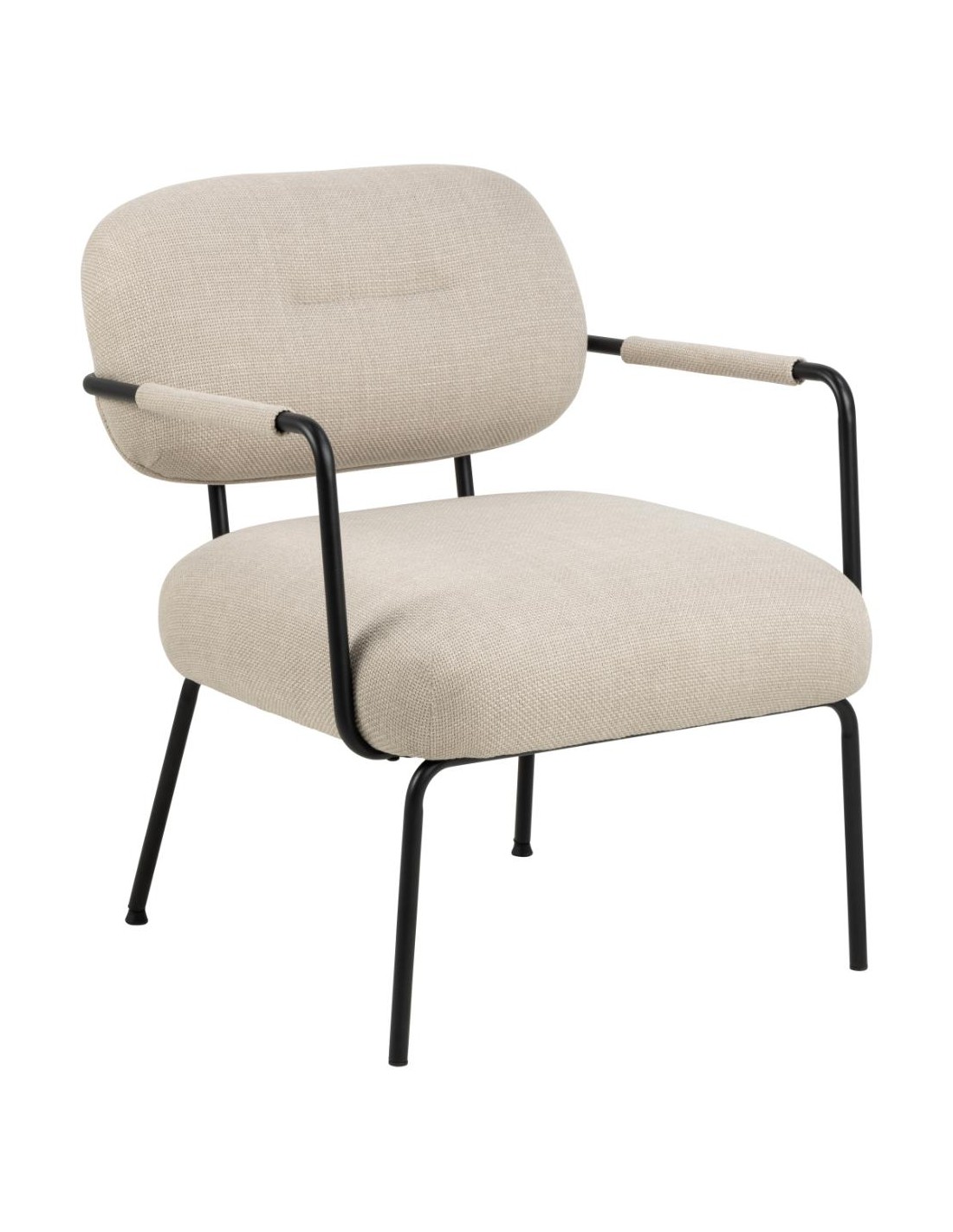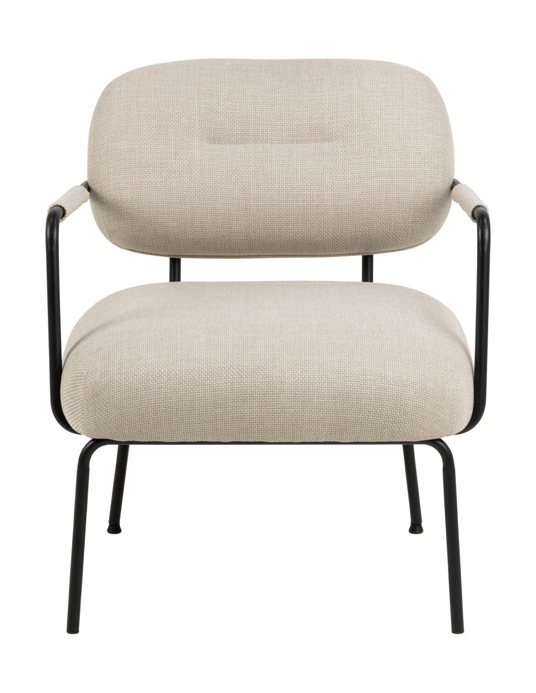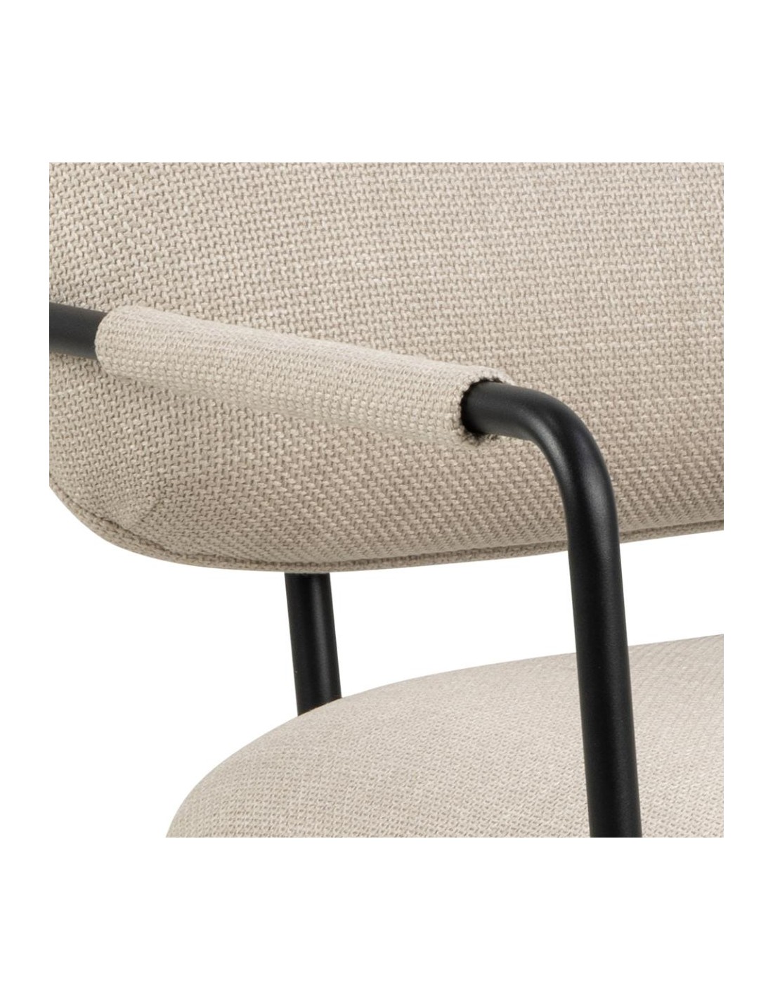 Кресло DILLON с подлокотниками, металлическая конструкция, порошковая покраска. Сиденье покрыто мягким бежевым гобеленом, наполнено пружинами карманного типа для длительного использования.